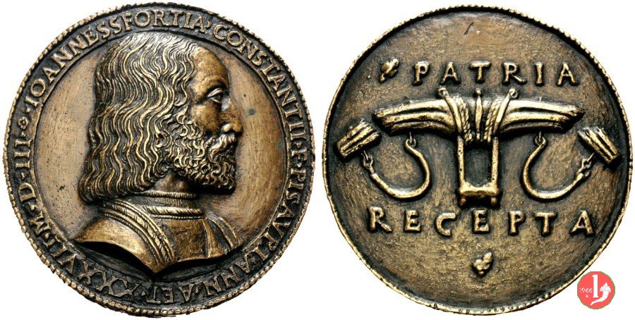 Pesaro - Giovanni Sforza Dritto: IO • SF • CONSTANTII • SF • F • PISAVRENS • busto corazzato a dx giogo sotto: RECEPTA = | |