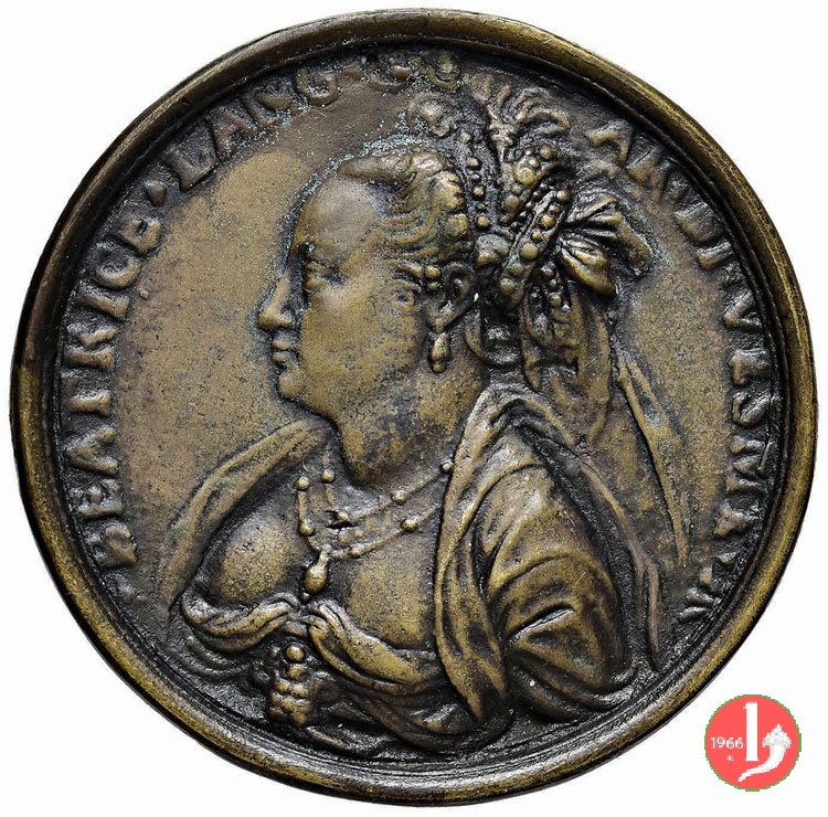 Piemonte - Beatrice Langosco Dritto: _ • BEATRICE • LANG • SC _ AR • DI • VESME • busto a sx con capelli raccolti da nastri e fili di perle e collana di perle | |