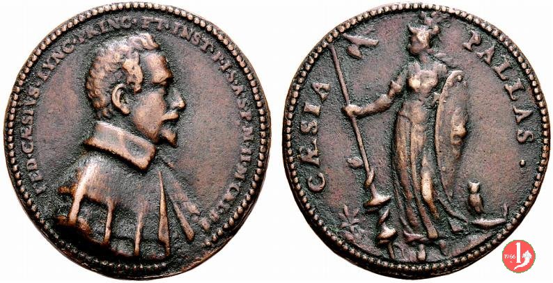 Federico Cesi Dritto: FED • CÆSIVS • LYNC • PRINC • ET • INST • P • I • S • A • S • P • M • II • M • CAEL • B Busto a dx con mantellina Pallade galeata in piedi e volta a sx, regge lancia e scudo; in basso, a dx: civetta | |