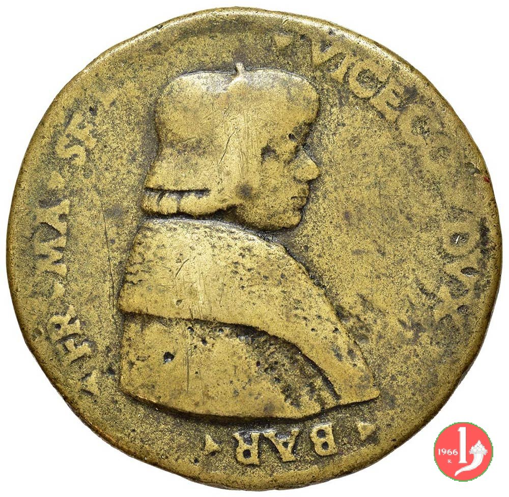 Bari - Francesco II Sforza Dritto: _ • FR • MA • SF • _ • VICECO • DVX • _ • BAR • busto a dx con cappello e soprabito Veliero tra quattro teste dei venti che soffiano | |