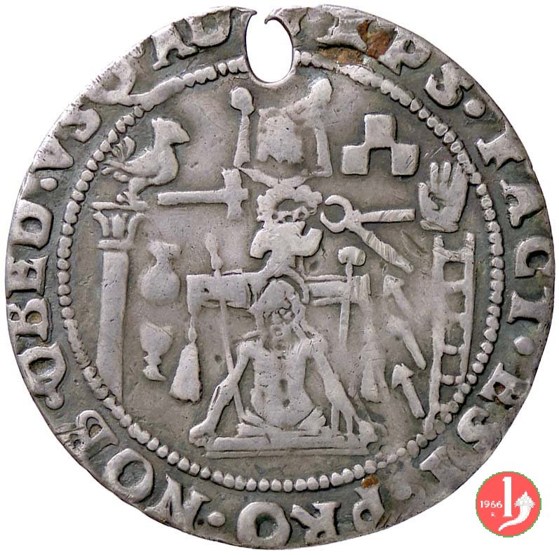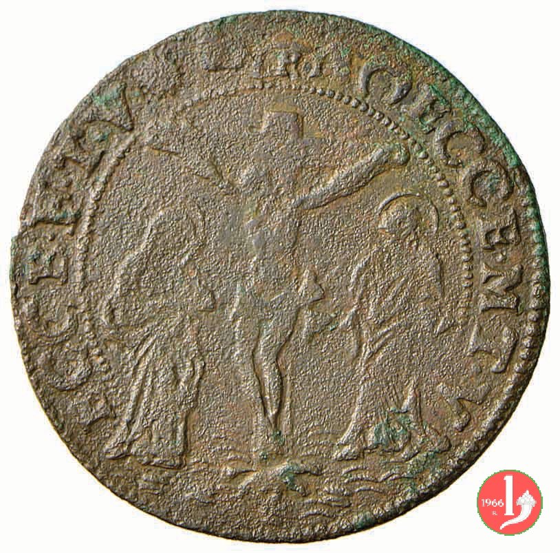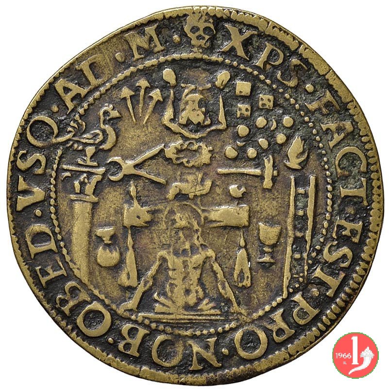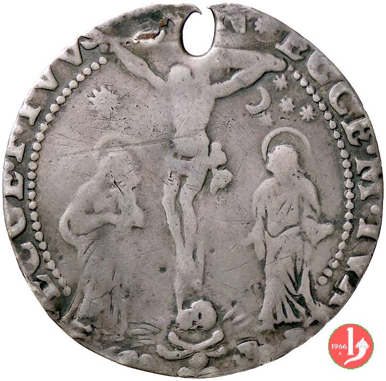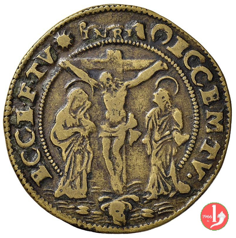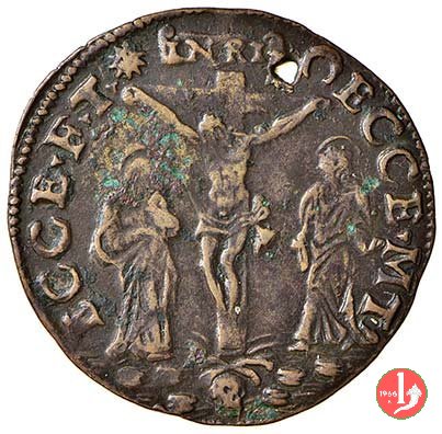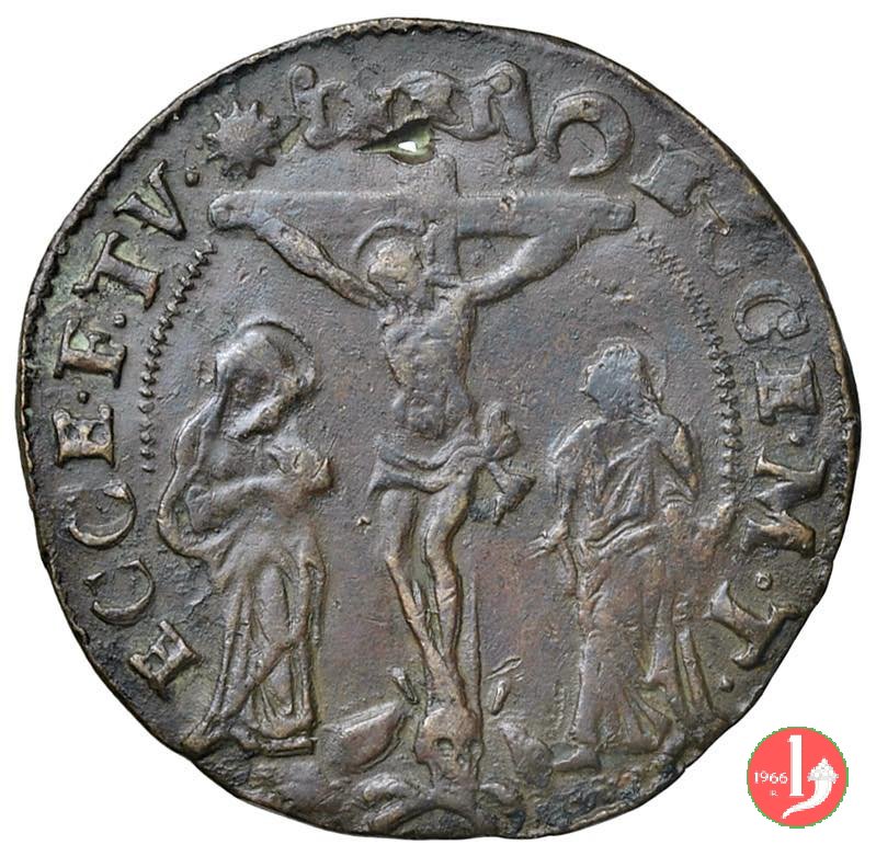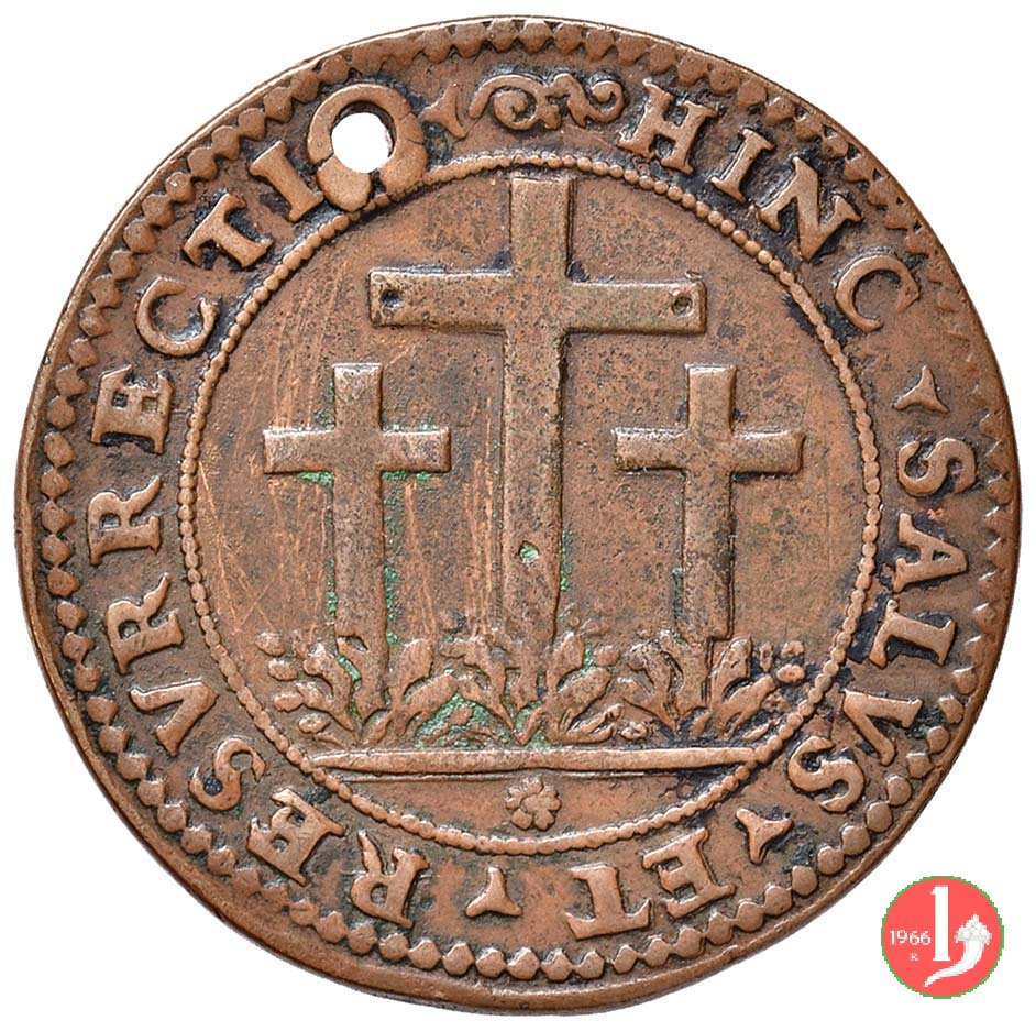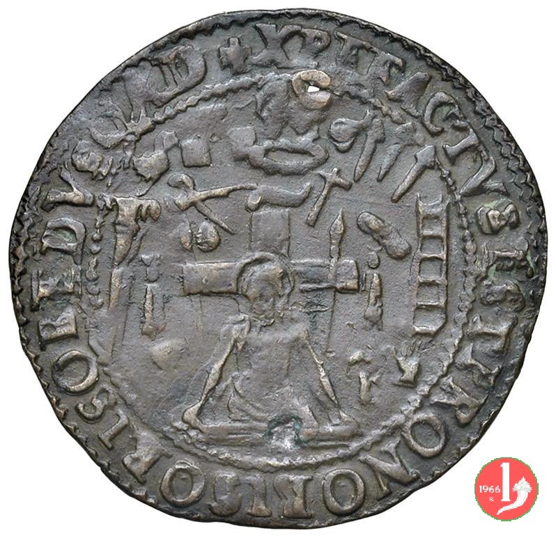 Verso: nel campo: X XPS X = FACTVS • EST • PRO = NOBIS OBEDIENS = VSQVE AD MORTEM = MORTEN AVTEM = CRVCIS
