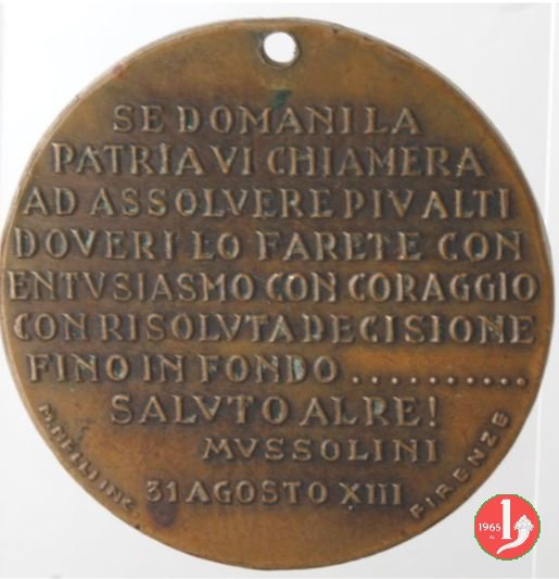 Noi tireremo dritto -C- Dritto: • 8 NOVEMBRE 1935 • = RICORDERO' busto elmato di Mussolini a sx nel campo: NOI = TIREREMO = DIRITTO | |