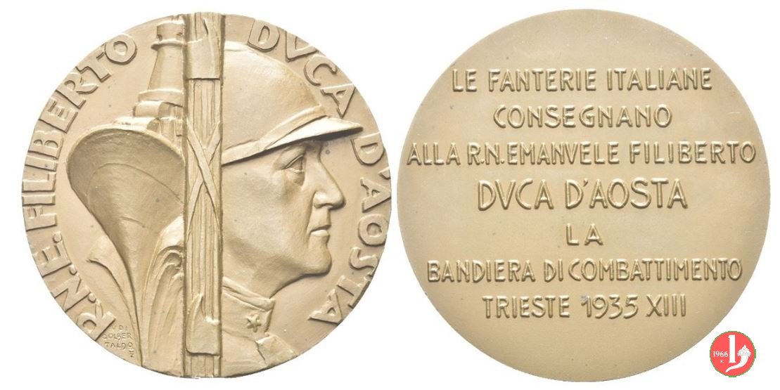 R.N. Emanuele Filiberto Duca d'Aosta 1935 -C- Dritto: R. N. E. FILIBERTO _ DVCA D'AOSTA ai lati di doppio fascio verticale: prua della Nave E. Filiberto e busto a dx del Duca d'Aosta con elmo e divisa militare in basso a sx: V. DI = COLBER = TALDO = Z coronata | |