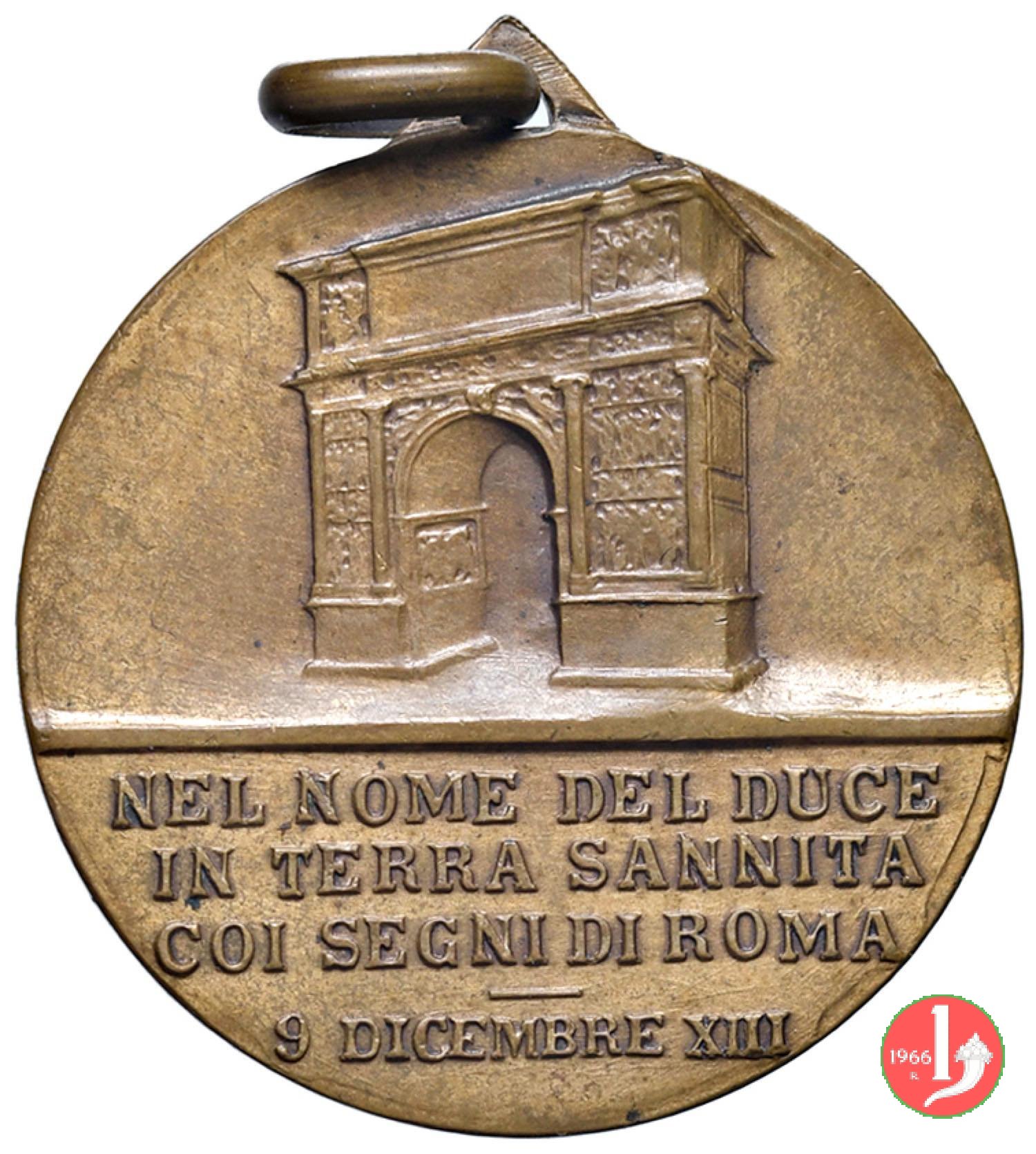 In Terra Sannita (1934) -C- Dritto: testa di Mussolini a sx su DVX e fuoco ardente sul taglio del collo: MISTRVZZI in esergo: NEL NOME DEL DUCE = IN TERRA SANNITA = COI SEGNI DI ROMA = 9 DICEMBRE XIII | |
