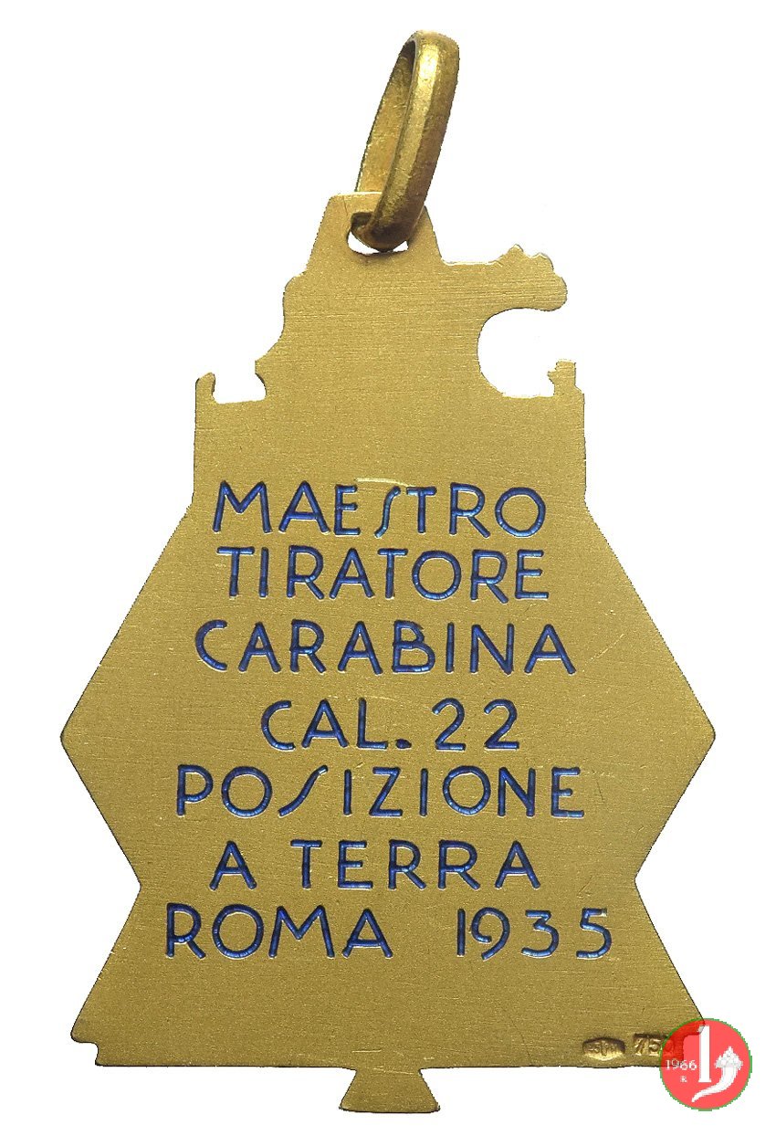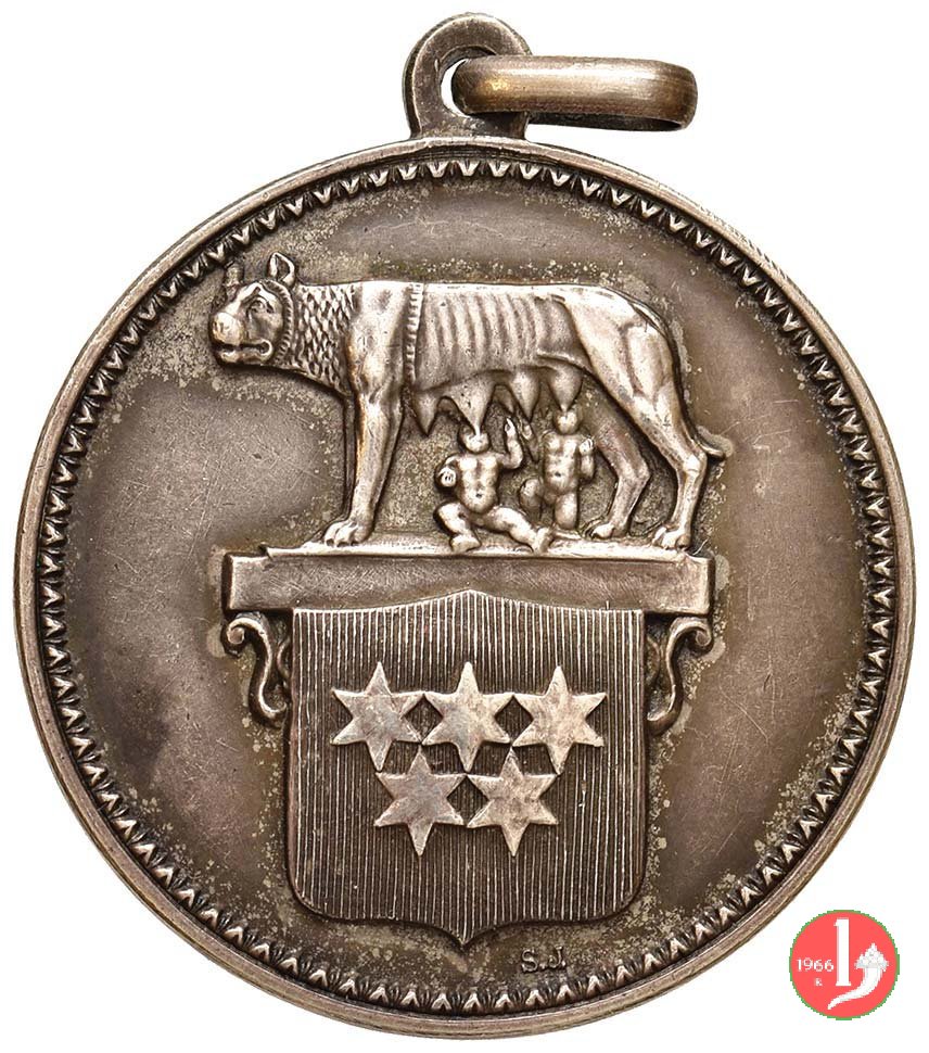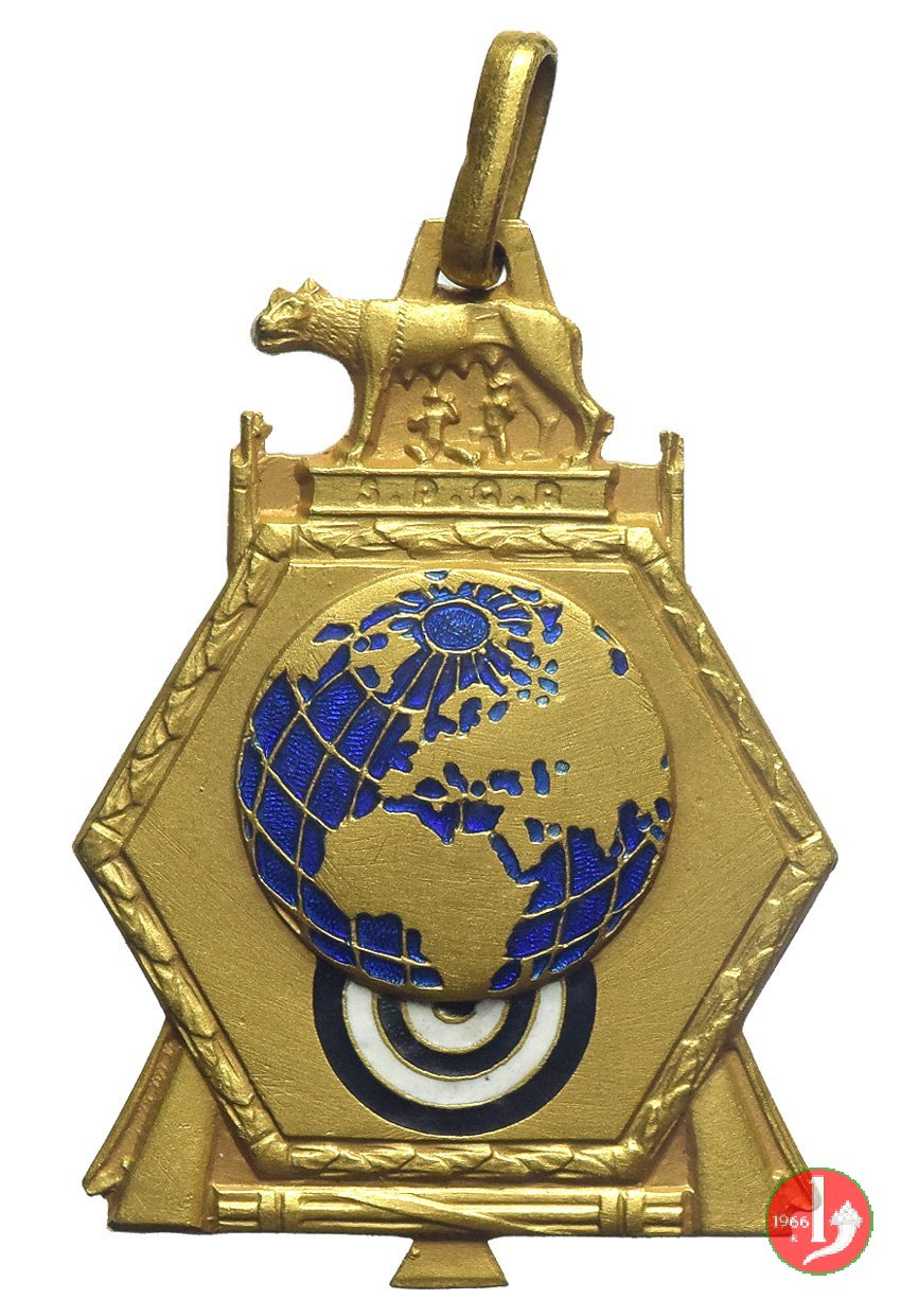 Tiro a Segno -Maestro Tiratore - Roma -C98 Dritto: su fascio, entro cornice esagonale con contorno a festoni: globo su bersaglio il tutto sormontato da Lupa Capitolina volta a sx su targa S.P.Q.R. | |