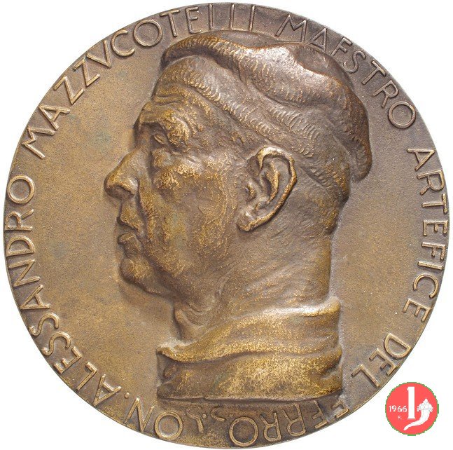 Alessandro Mazzuccotelli Maes. del Ferro -C- Dritto: ON. ALESSANDRO MAZZVCCOTELLI MAESTRO ARTEFICE DEL FERRO busto a sx con cappello sotto: G.C. | |