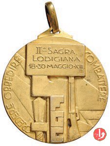 II Sagra Lodigiana FGC 18-05-1935 -C- Dritto: CREDERE OBBEDIRE _ COMBATTERE entro targa, su fascio e moschetto: IIa SAGRA = LODIGIANA = 18 • 30 MAGGIO • XIII. verticalmente, alla base del fascio: FGC | |