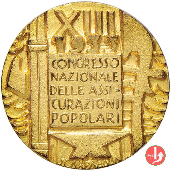 Congresso Nazionale Assicurazioni Popolari -C- Dritto: tra fascio verticale e il rico il tipico ferro della gondola in alto: XIII = 1935 entro targa sopra ad incudine: CONGRESSO = NAZIONALE = DELLE ASSI= = CURAZIONI = POPOLARI in basso: SCARPABOLLA | |