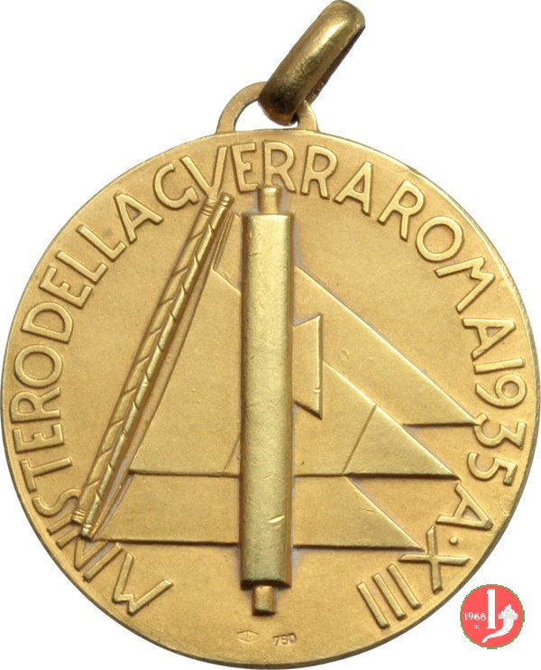 4- Raduno Nazionale degli Artiglieri Firenze 1935 -C- Dritto: Artigliere in piedi, su gradini, regge gagliardetto sullo sfondo leone e David in basso: fascio e cannoni decussati entro ghirlanda d'alloro | |