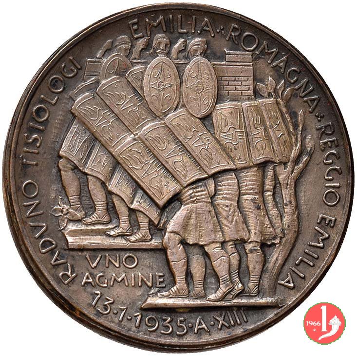 Raduno Fisiologi a Reggio Emilia 13-01-1935 -C- Dritto: LAZZARO SPALLANZANI SCANDIANESE busto nudo a sx sotto: JOHNSON Soldati romani con scudi sotto: VNO = AGMINE | |