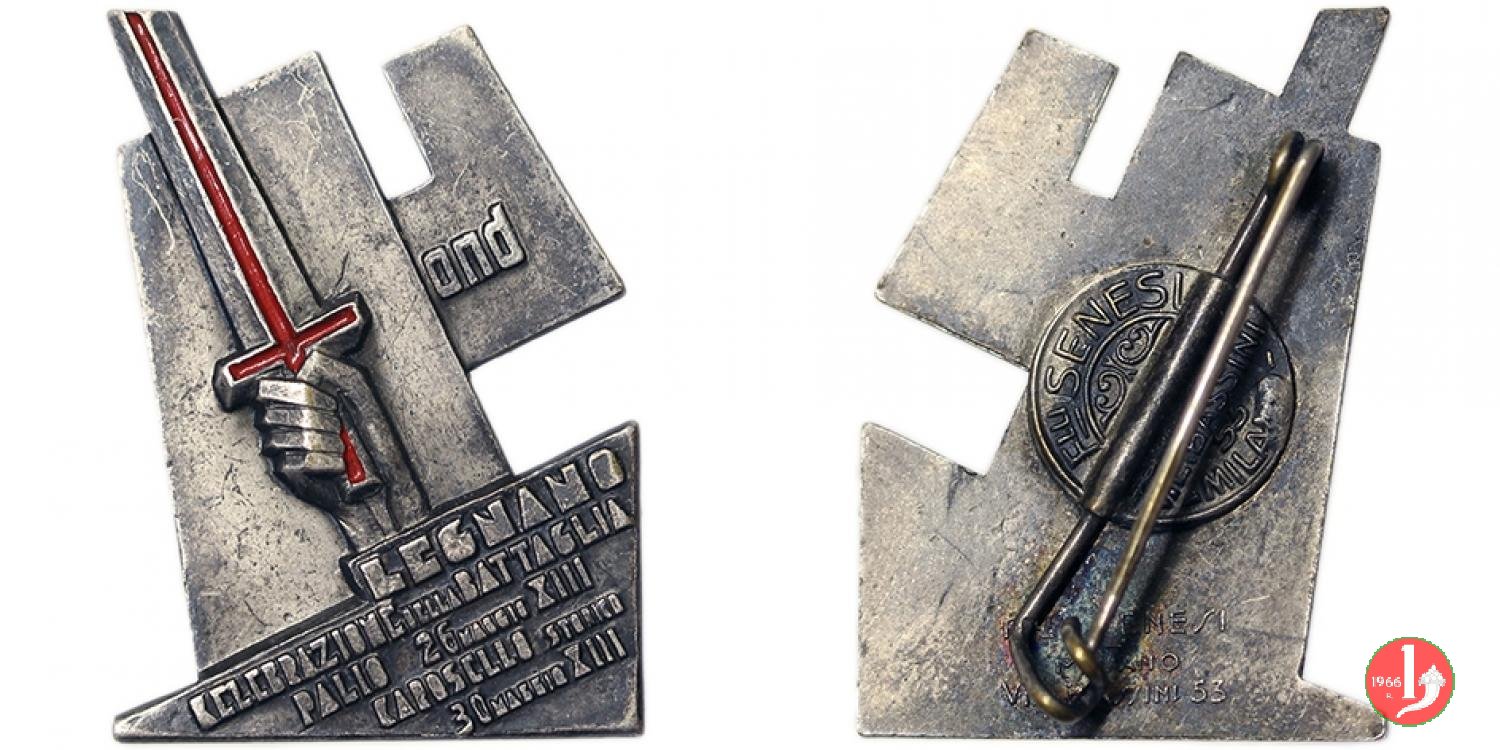 Palio e carosello di Legnano 1935 -C- Dritto: Spada con smalti rossi su fascio con OND alla base: LEGNANO = CELEBRAZIONE DELLA BATTAGLIA = PALIO 26 MAGGIO XIII = CAROSELLO STORICO = 30 MAGGIO XIII | |