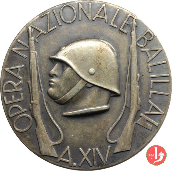 Dritto: OPERA NAZIONALE BALILLA = A. XIV° (fascio)