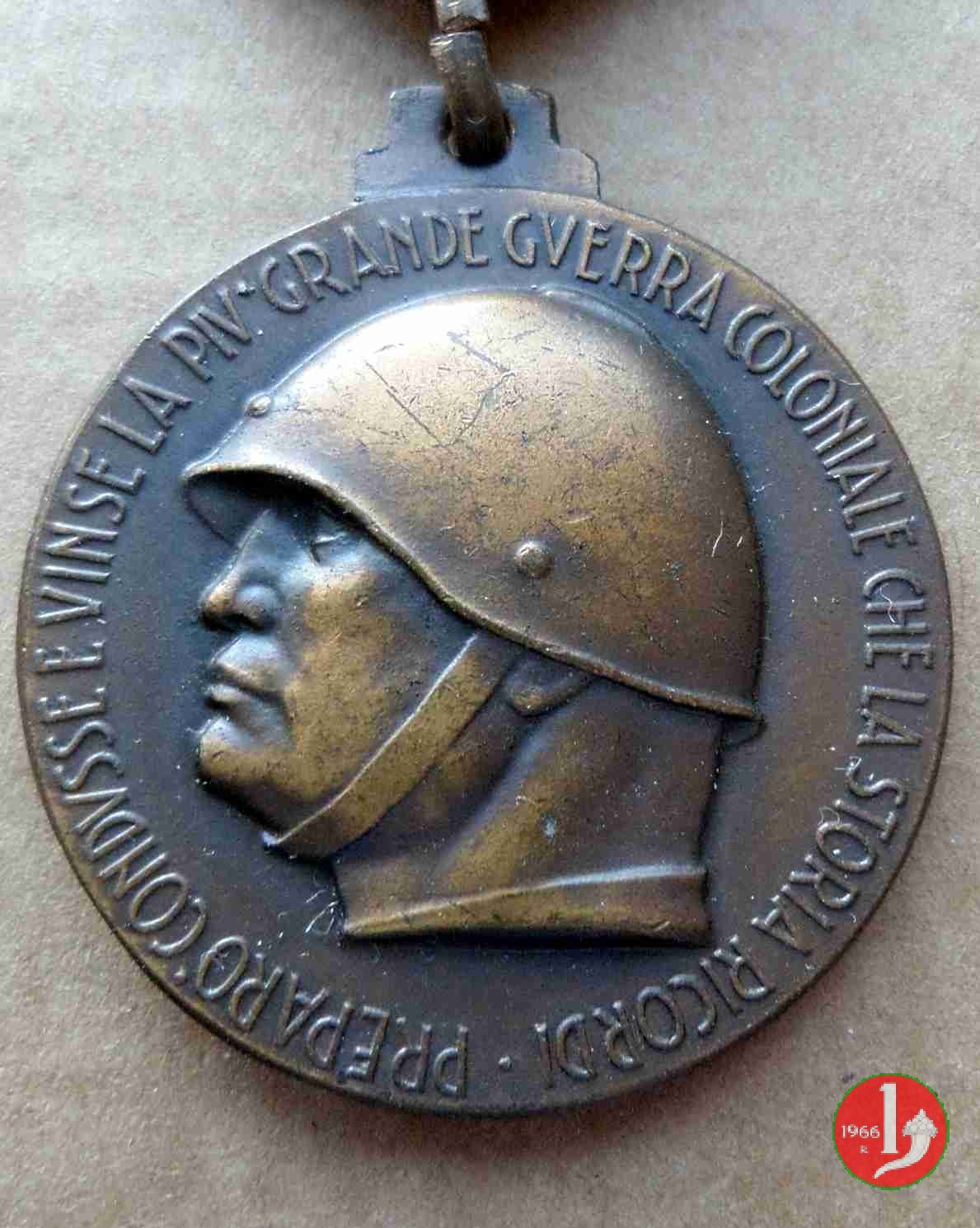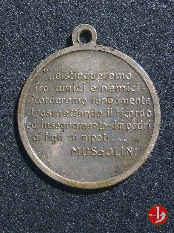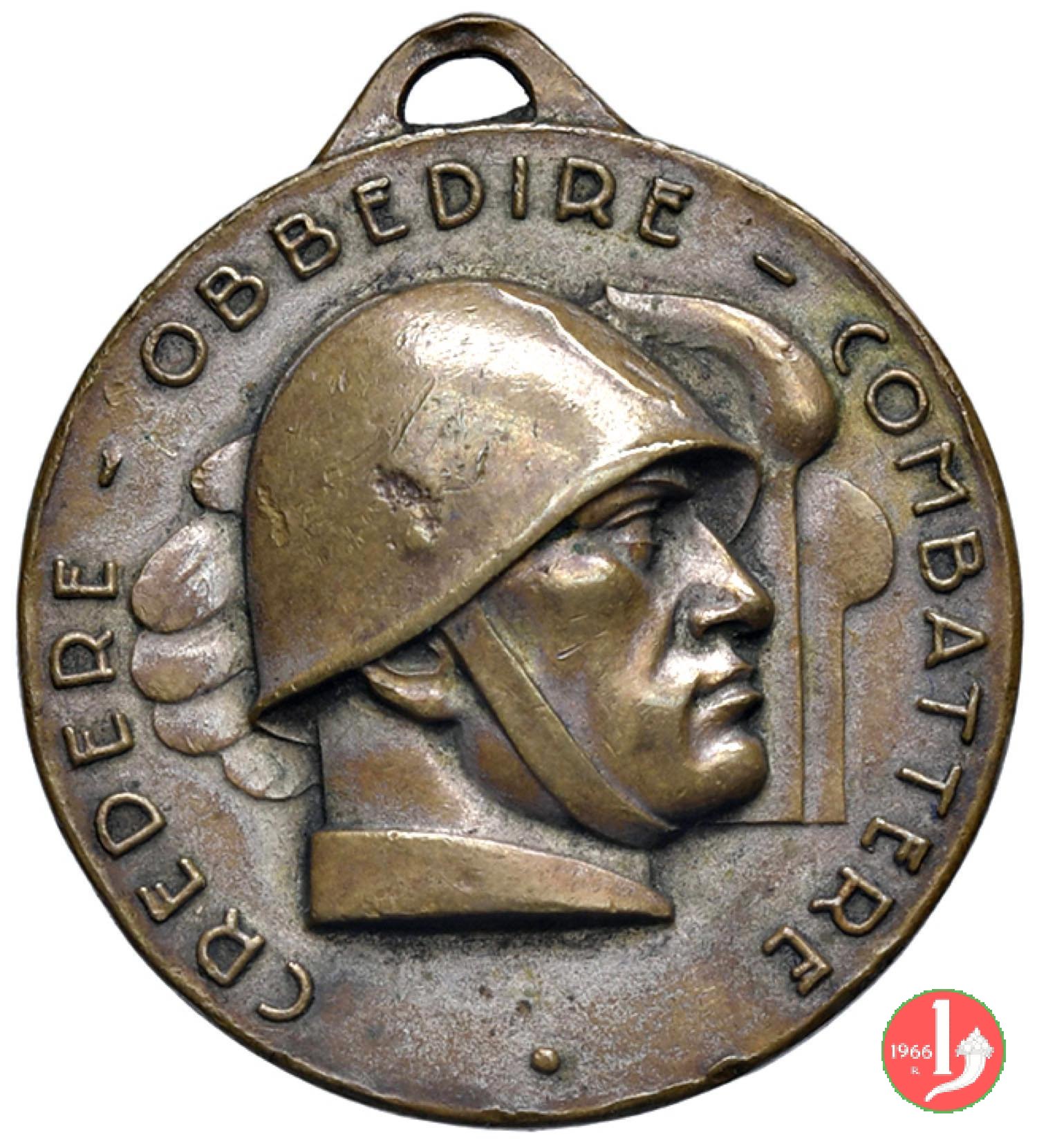 Verso: nel campo, in corsivo, tra due fasci: CREDERE - = OBBEDIRE - = COMBATTERE ! = MUSSOLINI