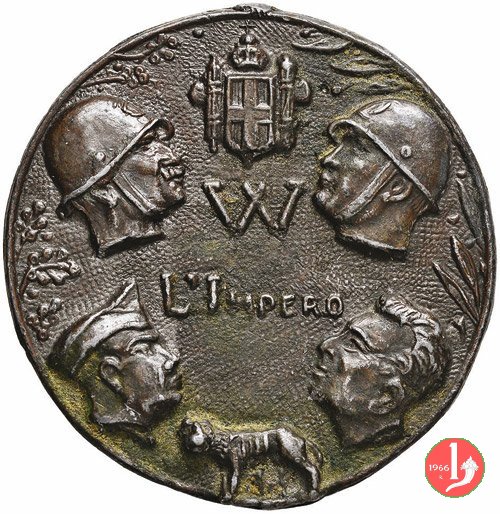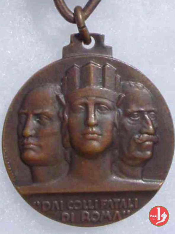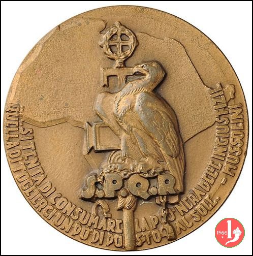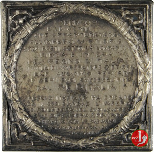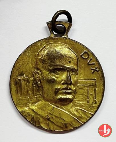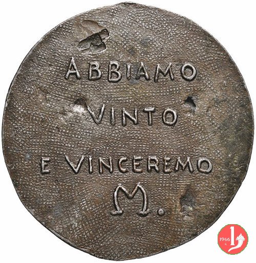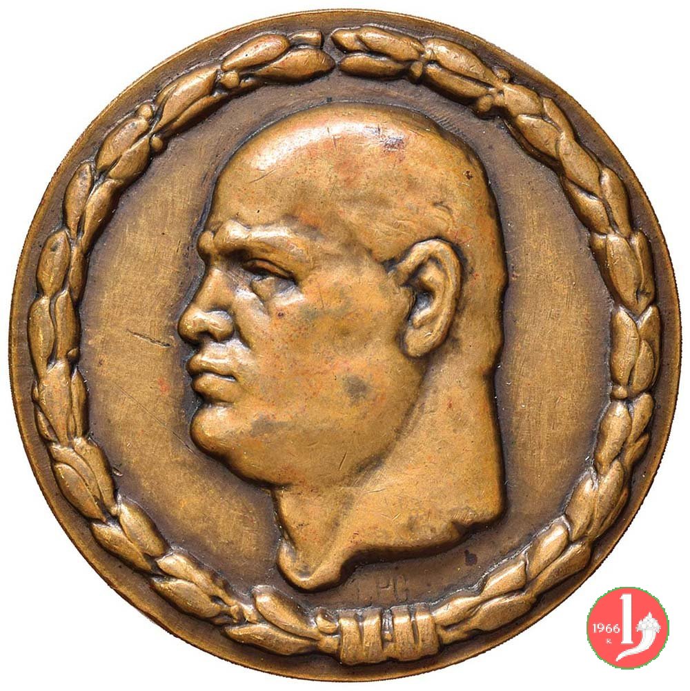Dritto: entro rami d'alloro legati da fascine in basso: testa di Mussolini a sx