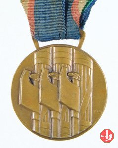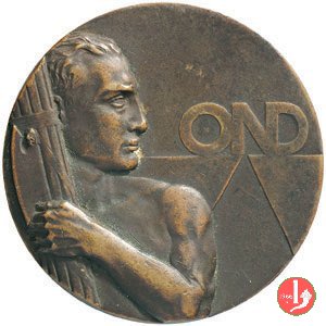 Dritto: tra due fasci contrapposti, in alto: RADVNO = SINDACALE = DOPOLAVORISTICO = LAV. INDVSTRIA
