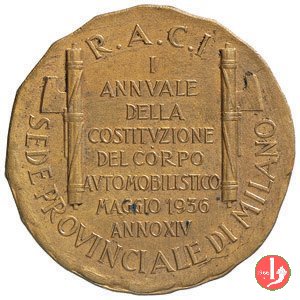 nel campo tra due fasci verticali: I = ANNVALE = DELLA = COSTITVZIONE = DEL CORPO = AVTOMOBILISTICO = MAGGIO 1936 = ANNO XIV