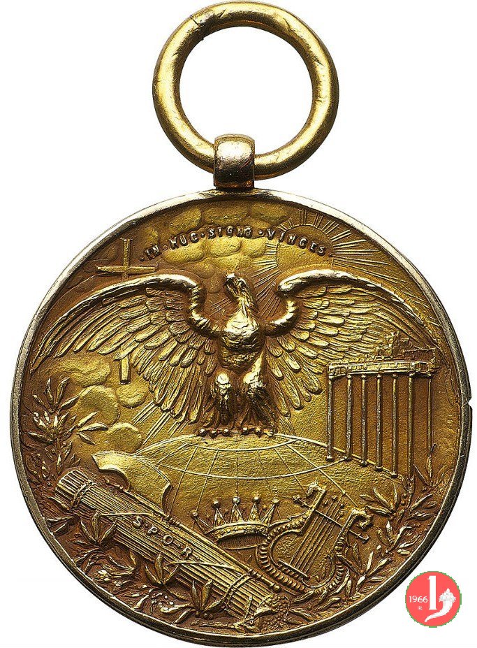 in basso: fascio SPQR, corona e lira tra rami d'alloro