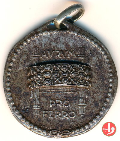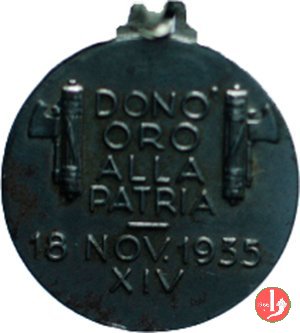 Verso: nel campo, tra fasci verticali con lame divergenti: DONO' = ORO = ALLA = PATRIA
