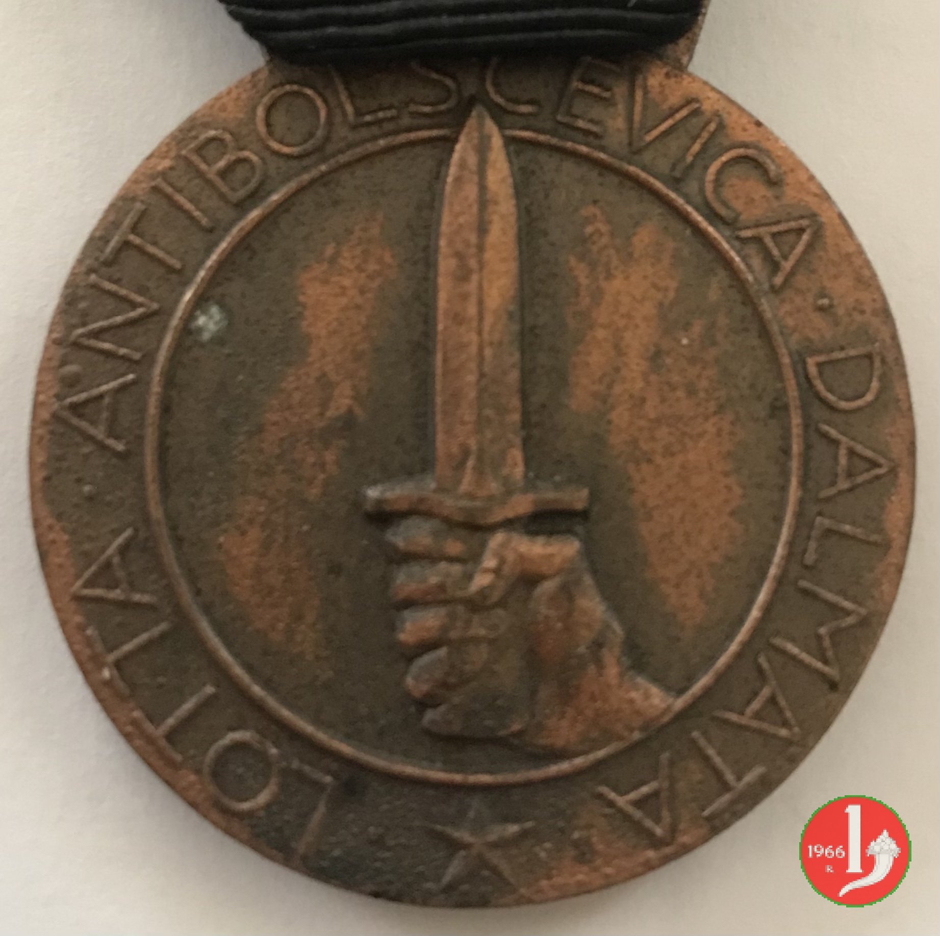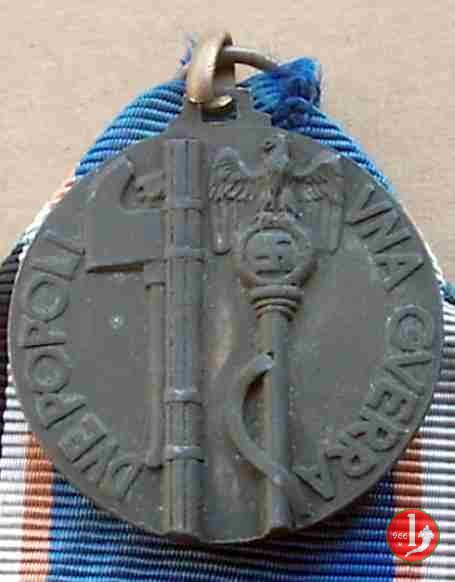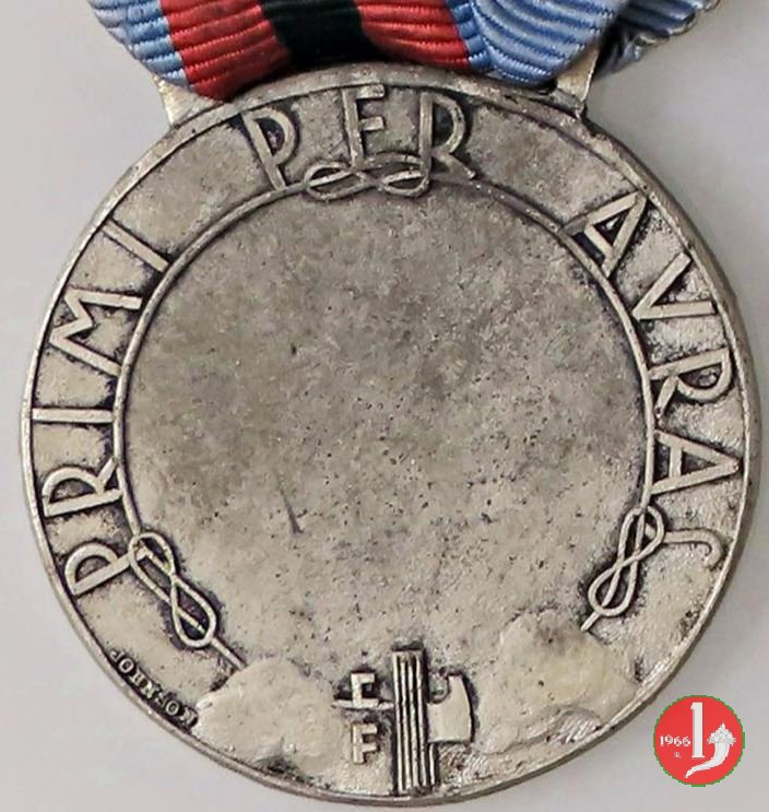 Verso: fascio verticale con lama a dx tra fronde di quercia e d'alloro e fregi a nastro