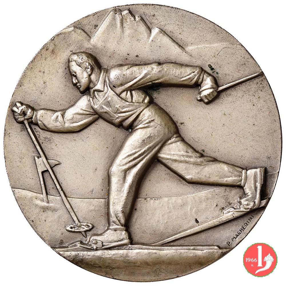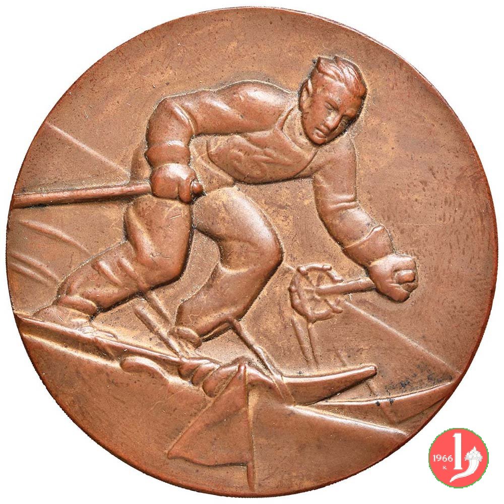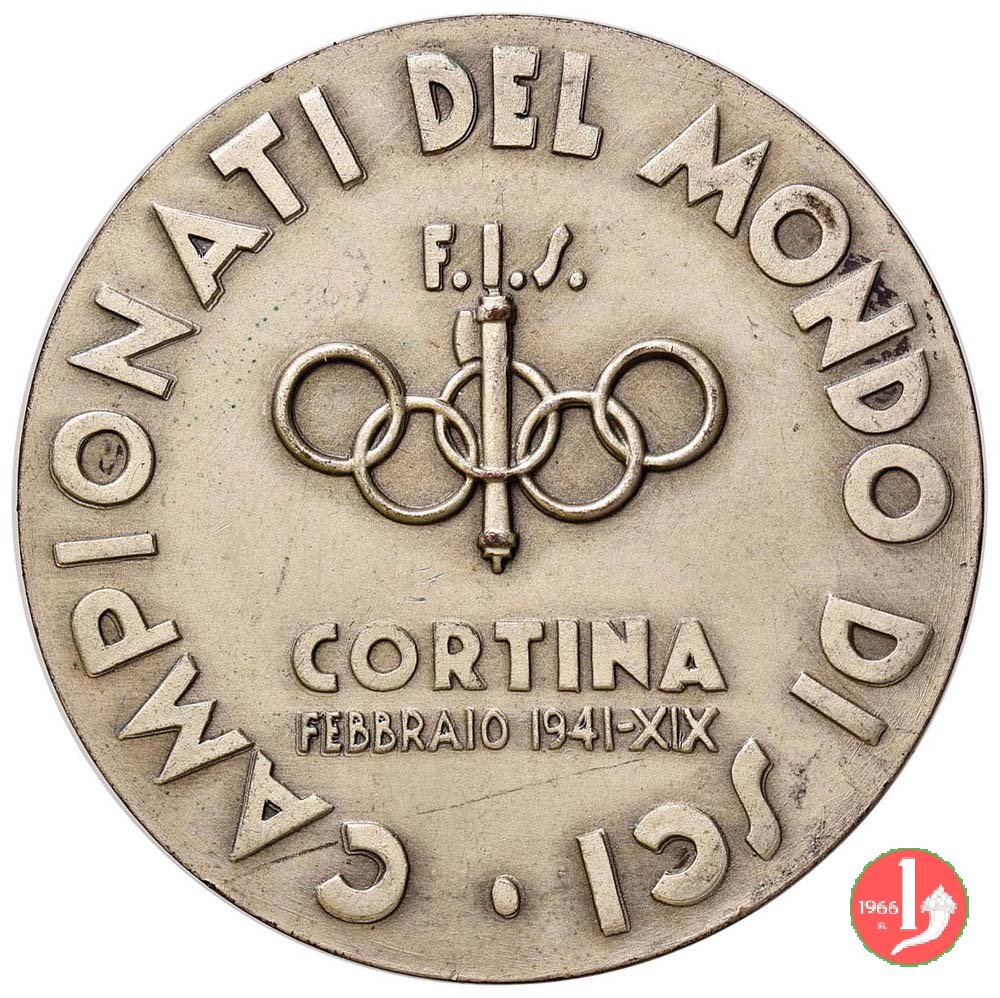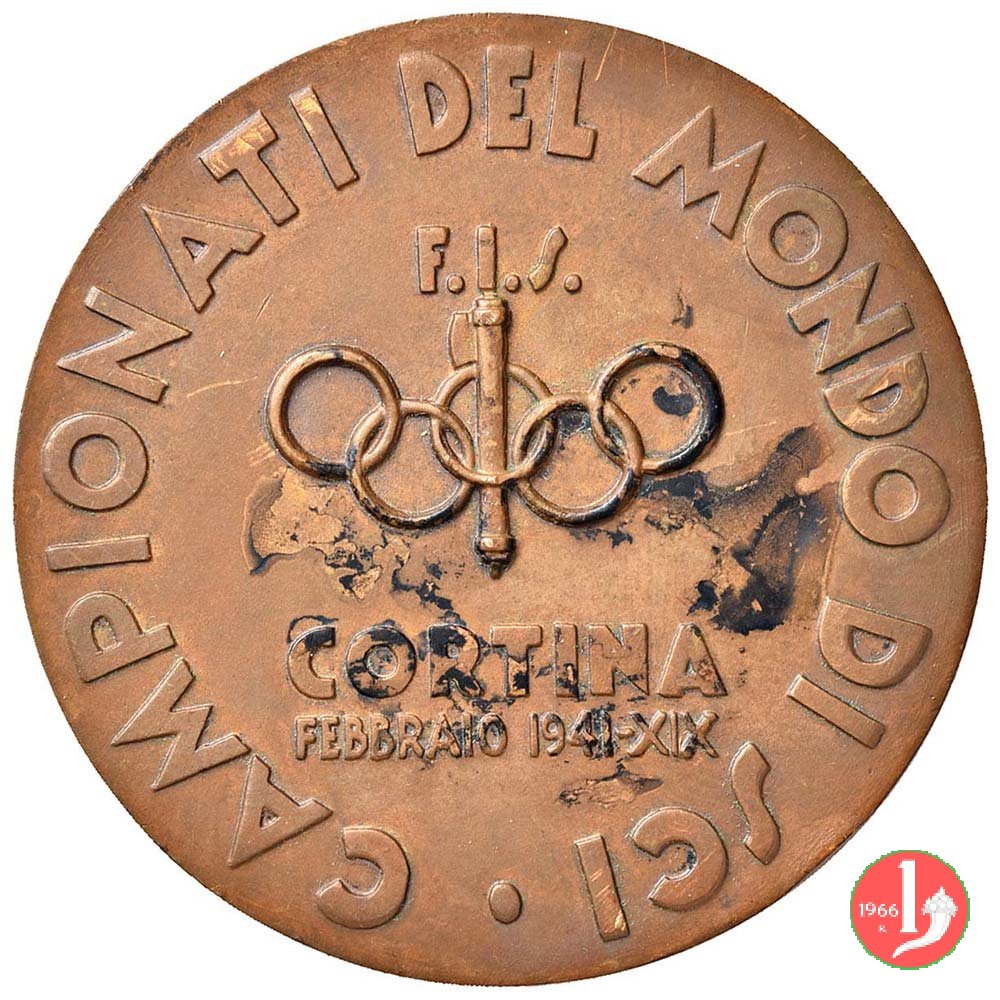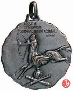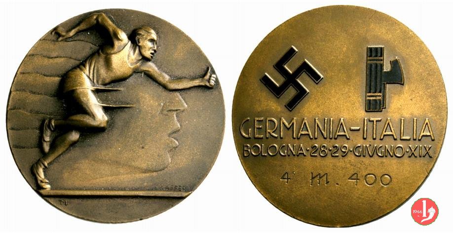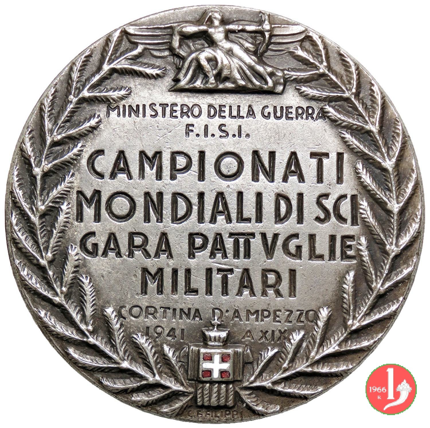 Verso: tra fasci verticali con lame divergenti ornati da semi-serto d'alloro in basso: VNIONE = ITALIANA = TIRO A SEGNO = - = GARA NAZION = GIOVANI = FASCISTI = - = ANNO XIX (inciso)