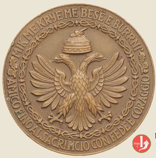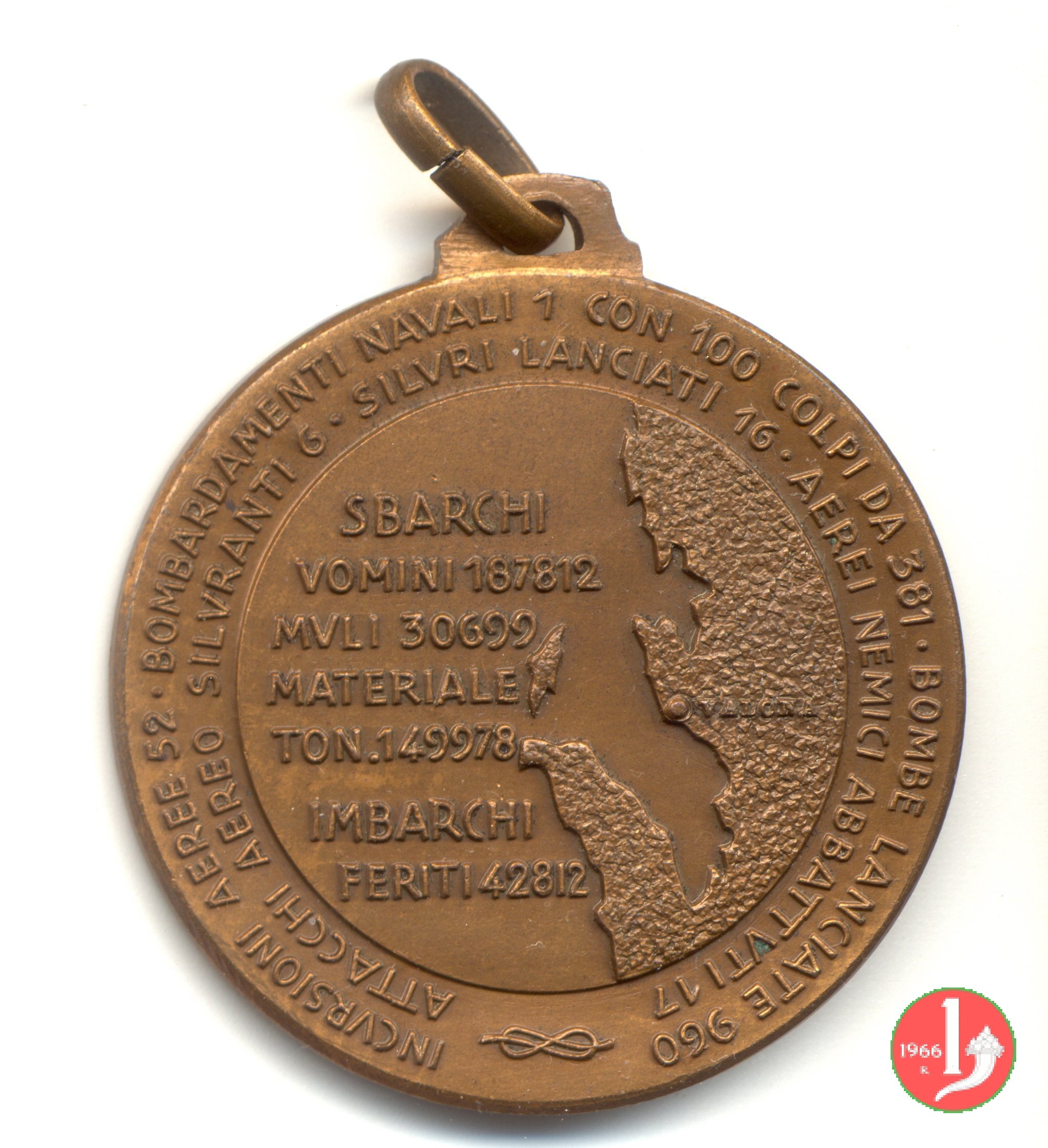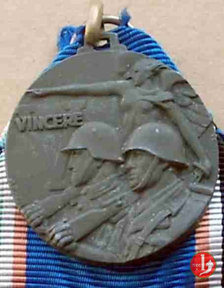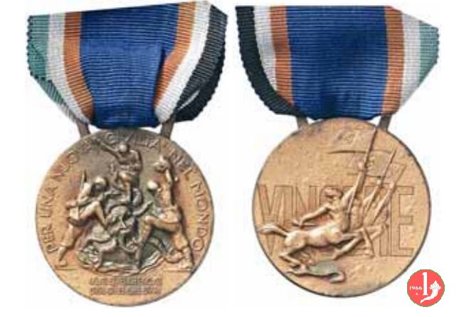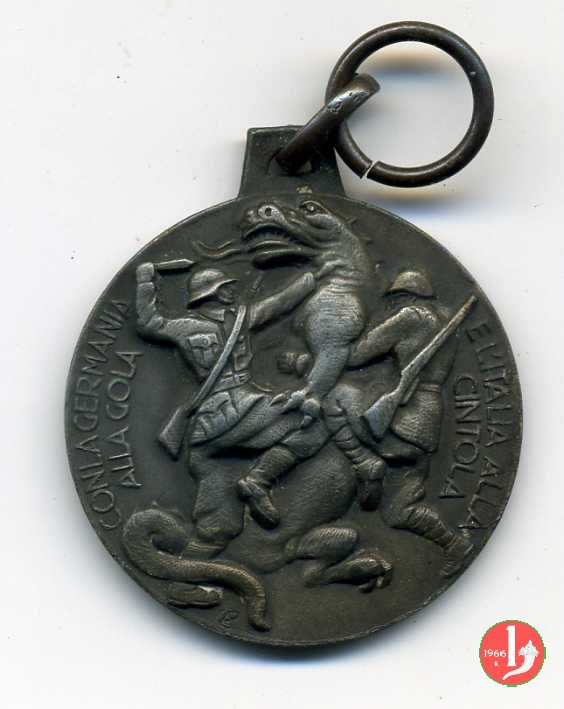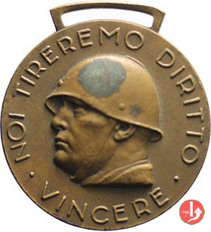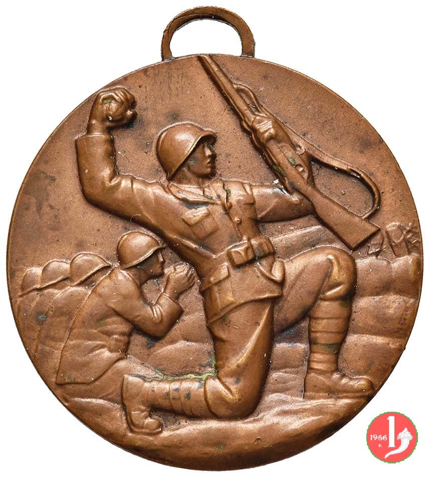 Dritto: busto della la figura allegorica della Vittoria alata volta a sx indica la strada a Militari Tedesco e Italiano con elmi e fucili