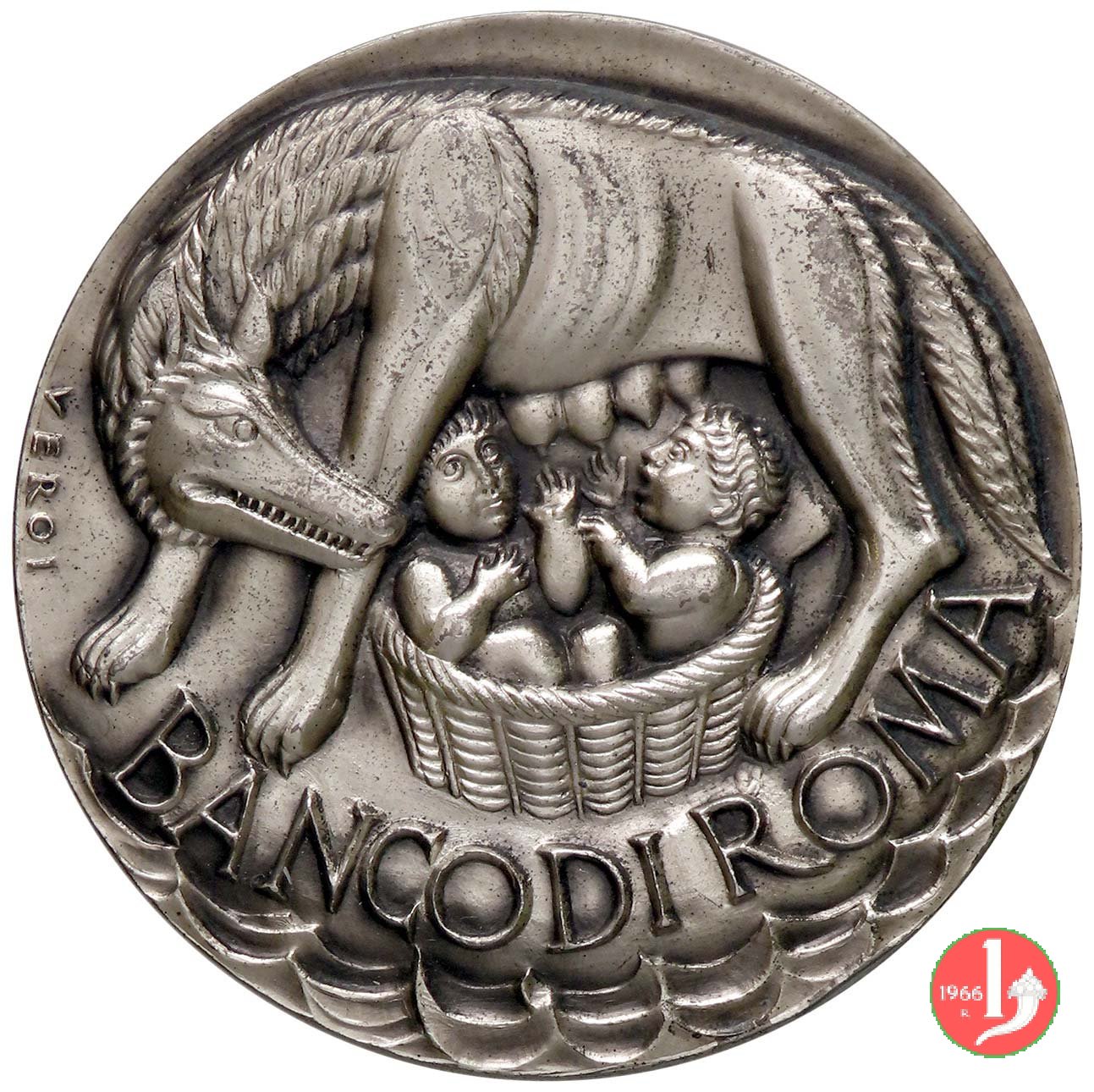 Verso: nel campo, entro rami d'alloro, tra la veduta del Palazzo sede della Banca e il Ponte sul Po: AI CONGRESSISTI = DELLE BANCHE POPOLARI = E DELL'ALLEANZA INTERNAZIONALE = DELLE COOPERATIVE = LA BANCA POPOLARE = DI CREMONA