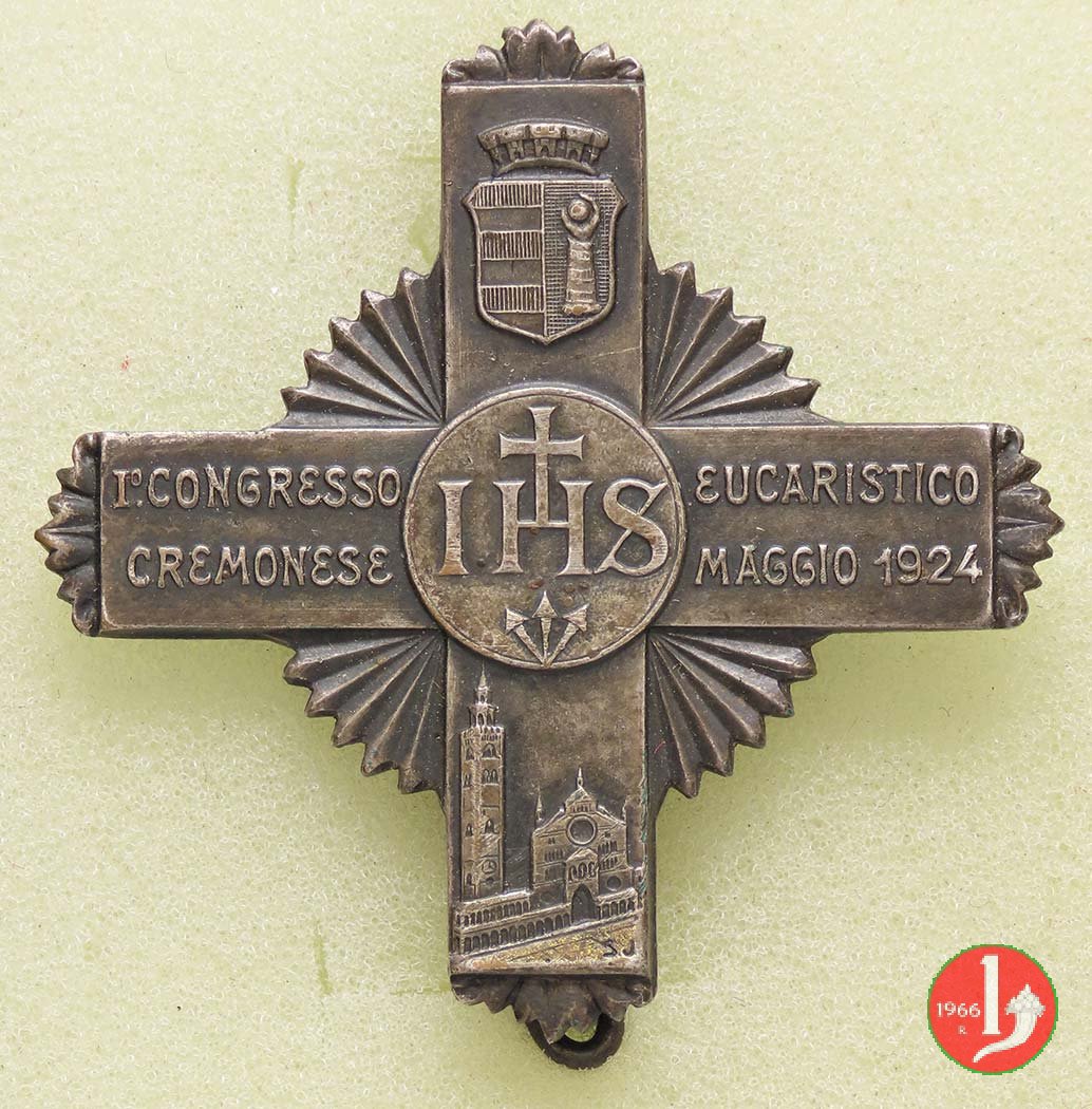 Dritto: sui bracci orizzontali: I° CONGRESSO _ EUCARISTICO = CREMONESE _ MAGGIO 1924