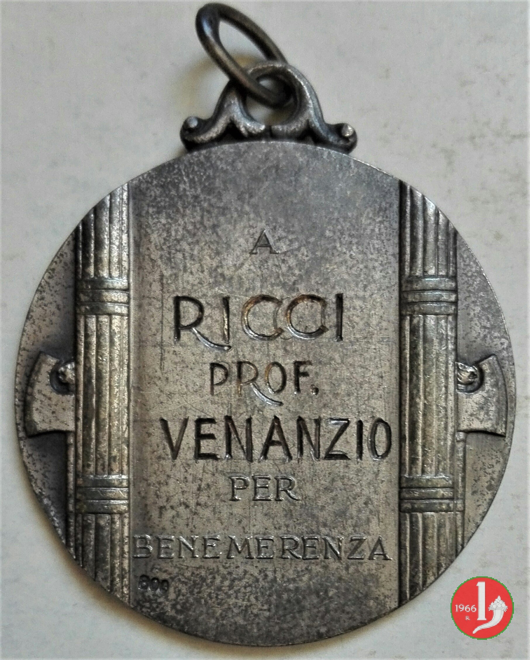 Verso: nel campo, a dx di ramo d'alloro: AL = DOTT.E ULISSE BONADEI = CHE = PRIMO IDEO' E PROPUGNO' = I SUOI = COLLEGHI ED = AMICI