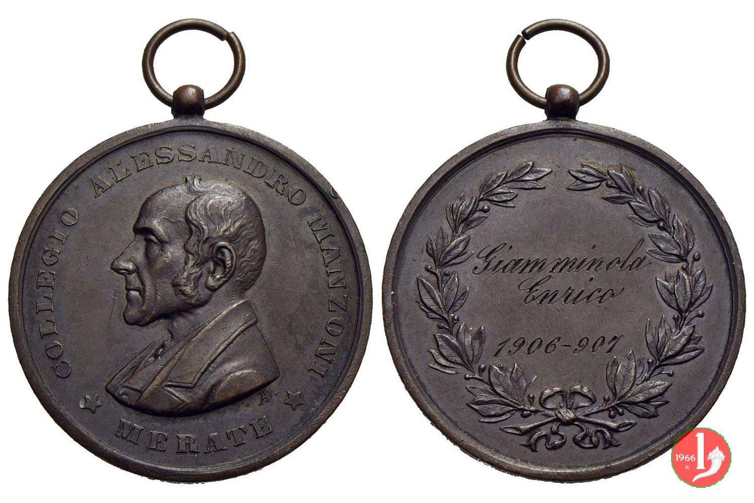 Merate - Collegio Alessandro Manzoni 1906 Dritto: COLLEGIO ALESSANDRO MANZONI = * MERATE * busto a sx con giacca, gilet e camicia sotto a dx monogramma: AD. | |