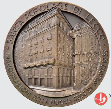 Banca Popolare di Lecco - Nuova Sede di Milano 1965 Dritto: BANCA POPOLARE DI LECCO = - INAUGURAZIONE DELLA NUOVA SEDE DI MILANO 1965 - Vista della nuova Sede della Banca in basso, ai lati: E. MONTI _ S. JOHNSON vista planimetrica del lago di Como su tre targhe poste in sovrapposizione con i contorni le viste delle agenzie di: VIA S. TOMMASO 1936 _ VIA ROVELLO 1948 _ PIAZZA MERCANTI 1954 in basso: MILANO su incudine | |
