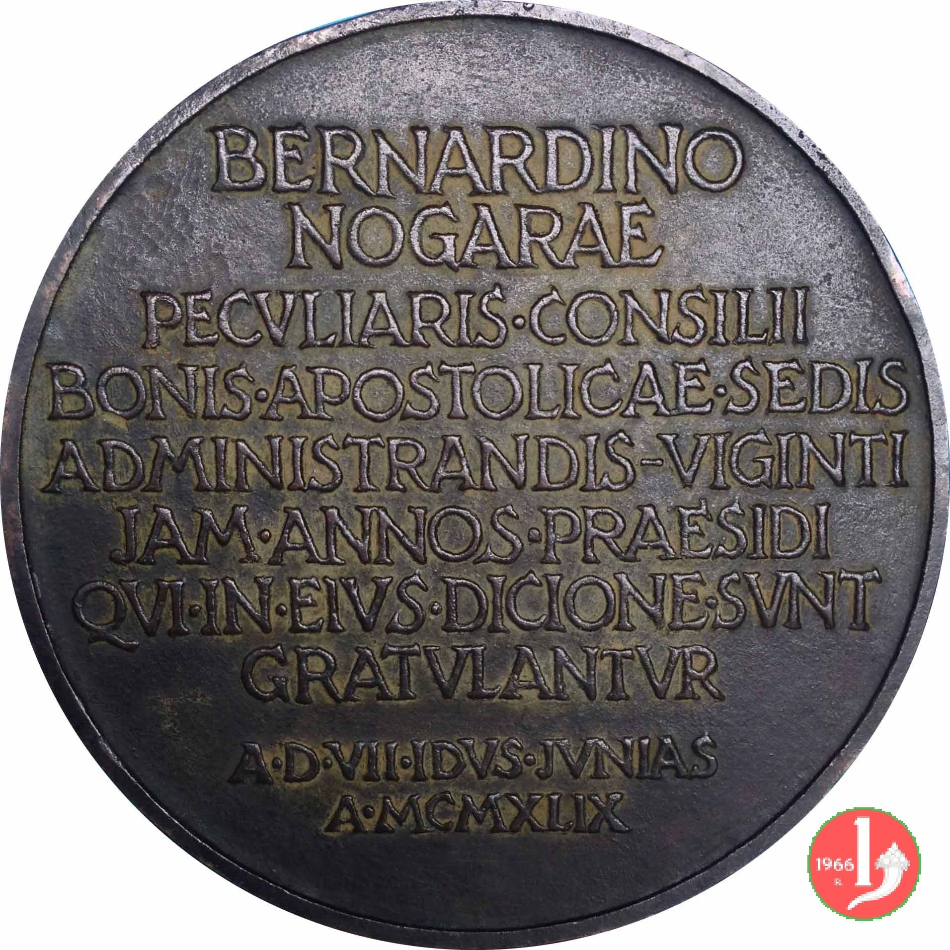 Bellano - Bernardino Nogara 1949 Dritto: BERNARDINVS • NOGARA busto a sx con camicia, giacca e cravatta nel campo a dx: MIS = TRV = ZZI | |
