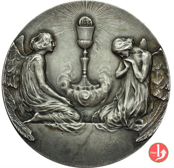 Monza - Congresso Eucaristico 1922 Dritto: due Angeli genuflessi ai lati di calice con Ostia raggiante in basso,a dx: LANDI | |