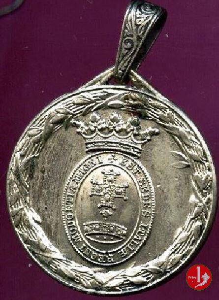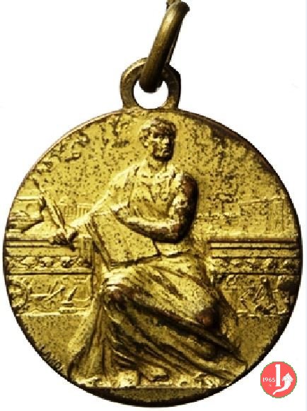 Collegio Villoresi San Giuseppe - Premio Dritto: Gesú seduto di 3/4 a sx con volto nimbato e raggiante tra due fanciulli a dx, presso il bordo e sopra alla spalla: S.J entro nastro orizzontale con greca e su rami d'alloro: COLLEGIO VILLORESI = S. GIVSEPPE = - = MONZA | |