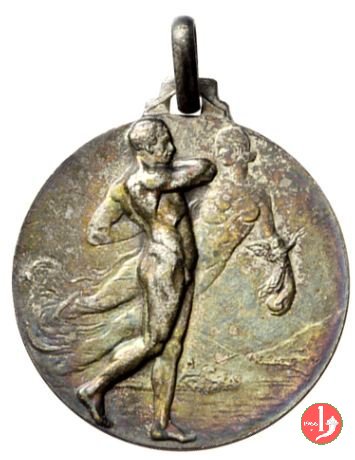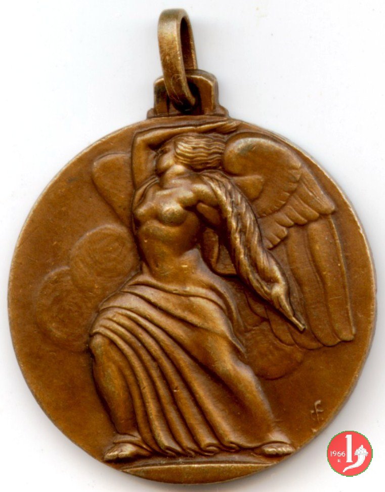 Premio Gara Colombofila Udine-Monza 1914 Dritto: figura allegorica femminile della Vittoria, in piedi, a sx, regge ramo d'alloro