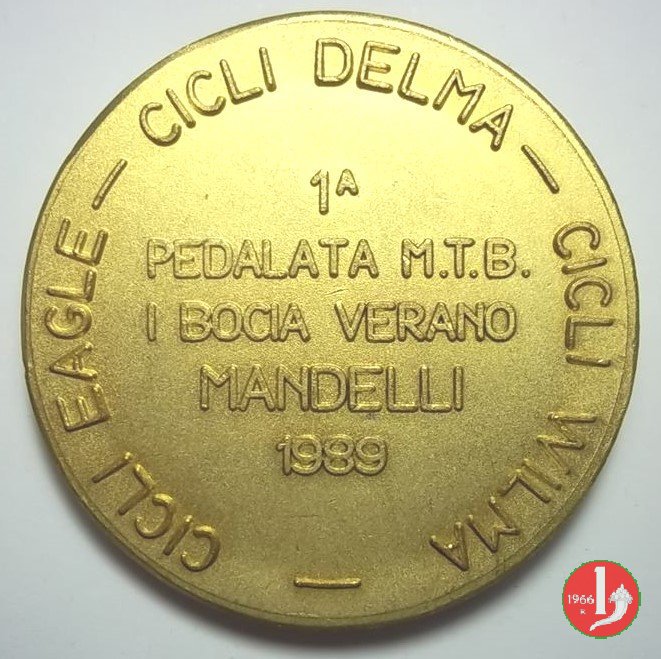 Verano - Associazione I Bocia 1989 Dritto: fiore di Genziana a dx, presso il bordo: GRILLI nel campo: 1° = PEDALATA M.T.B. = I BOCCIA VERANO = MANDELLI = 1989 | |