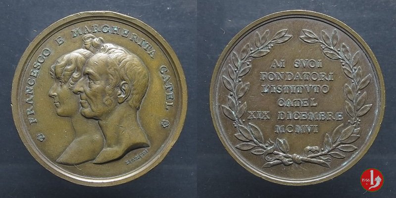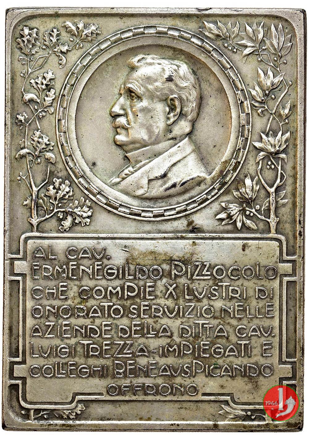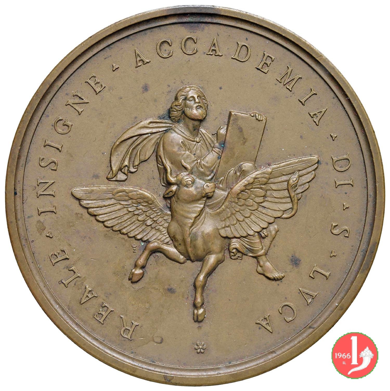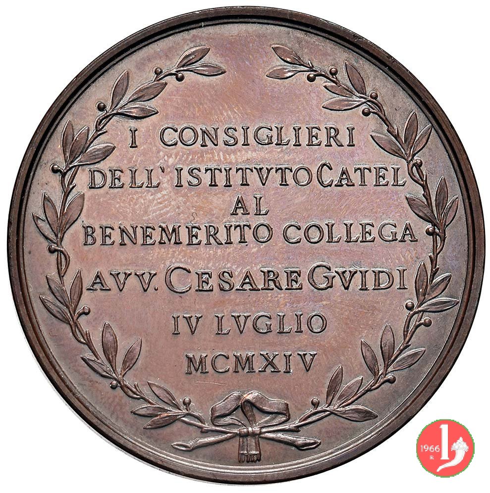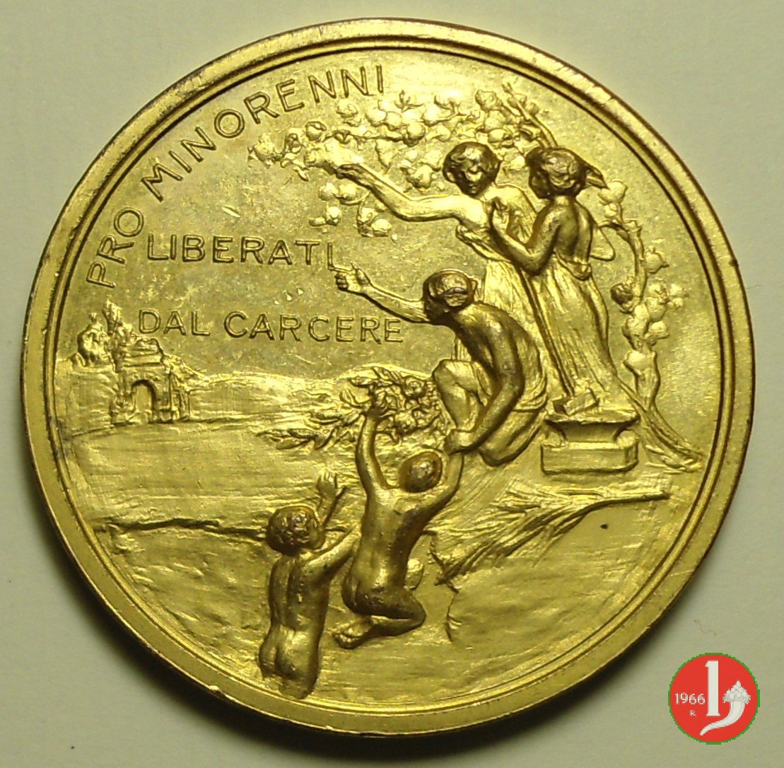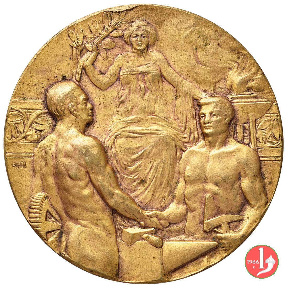 Verso: entro rami d'alloro legati in basso da nastro: AL CONSIGLIO = DEL BANCO DI ROMA = PER ALACRITA' E SENNO = INSIGNE = NELL'ANNO XXV  = DALLA FONDAZIONE = DELL'ISTITUTO = GLI IMPIEGATI