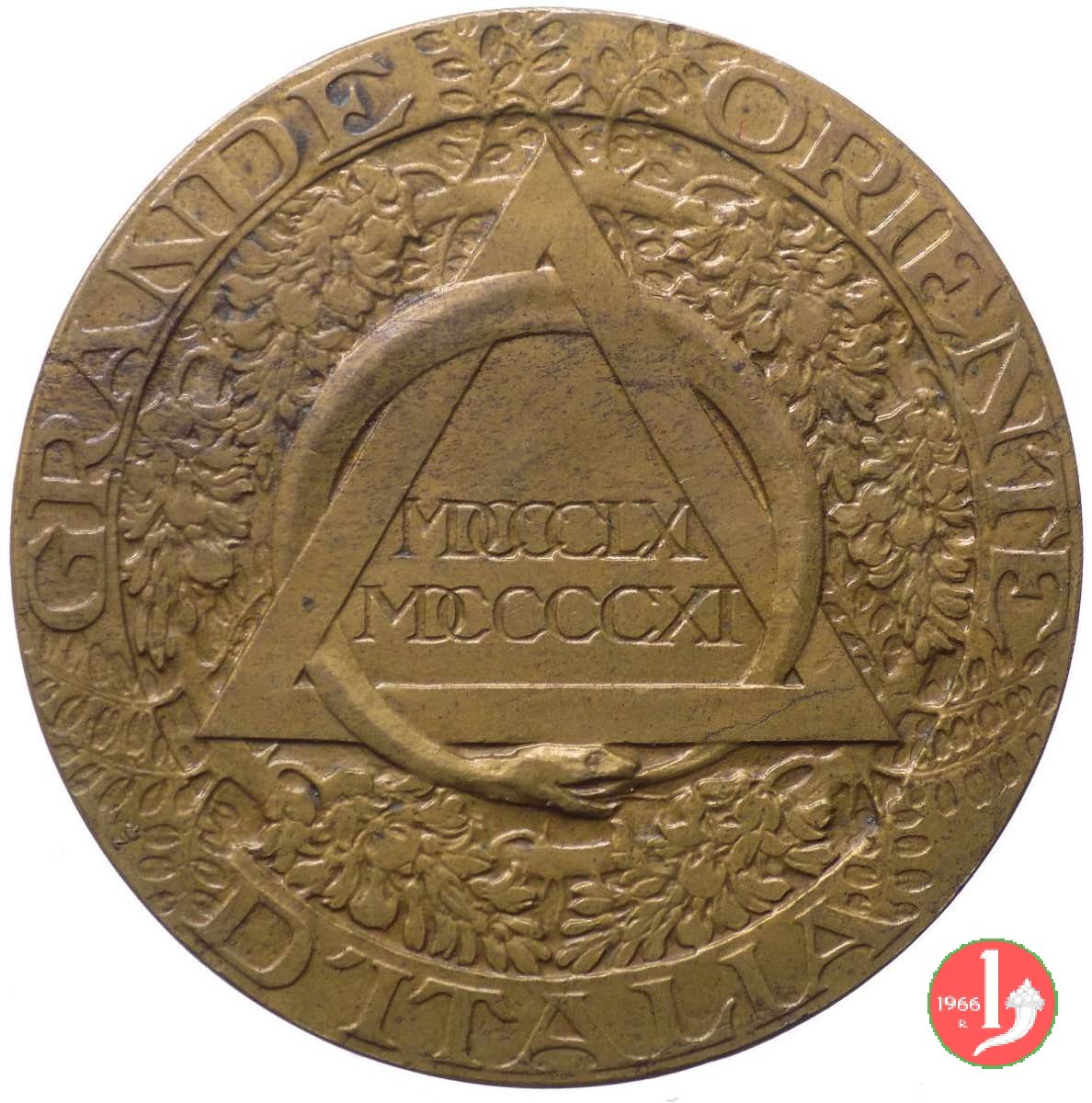 Verso: entro cerchio di stemmi delle venti regioni Italiane ed entro cerchio perlinato: aquila ad ali spiegate su scettro