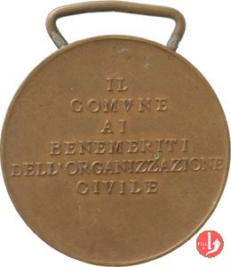 Dritto: Stemma turrito con festone d'alloro legato in basso da nastro incrociato