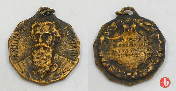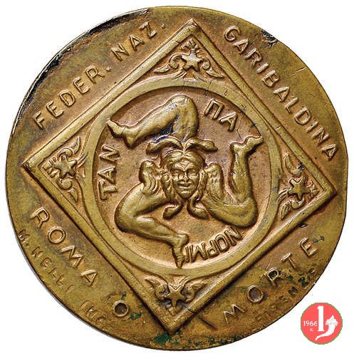 Verso: ai lati di rombo contenente trinacria TA _ NA _ NOPMI: FEDER. NAZ. _ GARIBALDINA = ROMA _ O MORTE