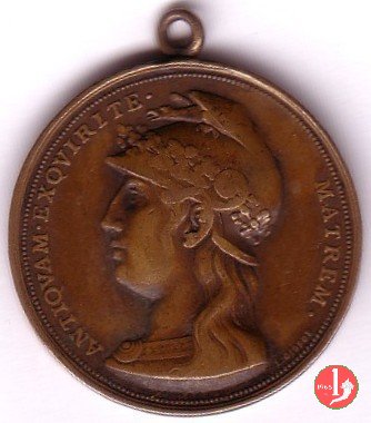 Verso: figura femminile, in piedi preso albero, di schiena, sorregge libro aperto su colonna dorica con in epigrafe alcune battaglie: CERNAJA - MONTEBELLO - PALESTRO - MAGENTA - SOLFERINO - DIGIONE