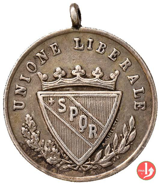 Verso: tra rami d'alloro e quercia legati in basso da nastro: ROMA = VIII GARA = PROVINCIALE = 1901