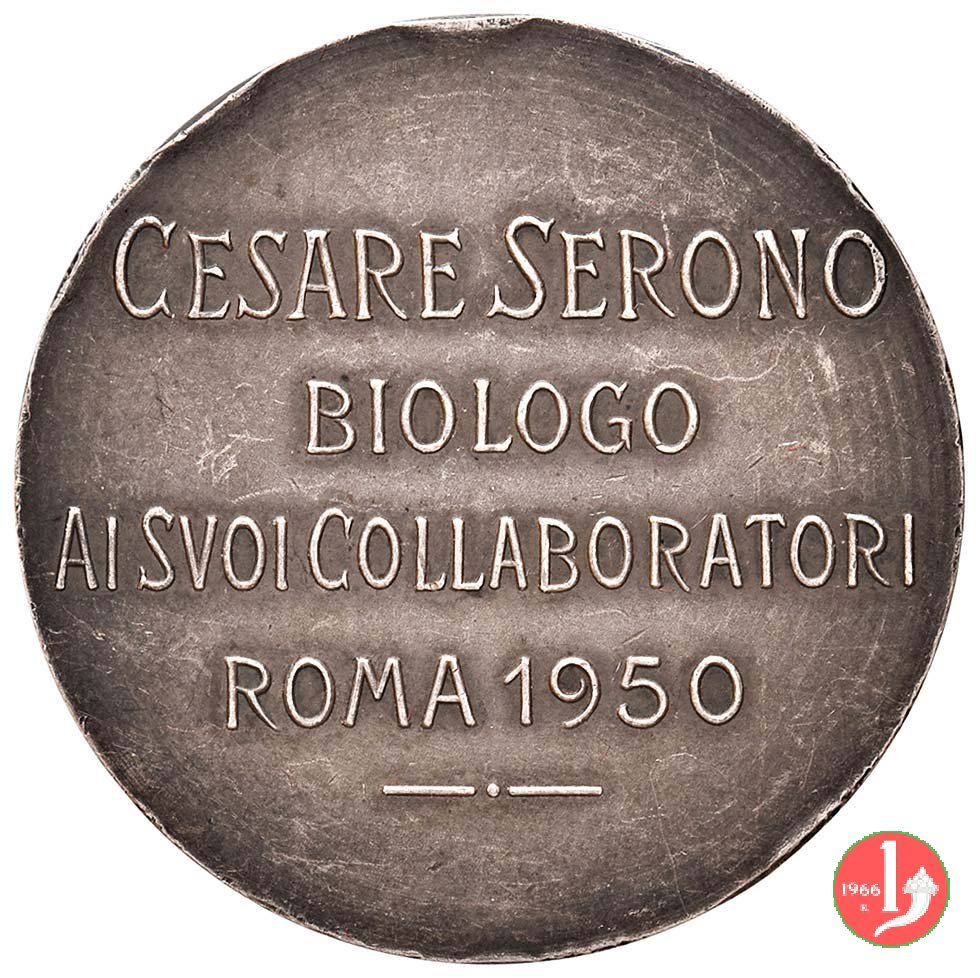 Verso: nel campo: CESARE SERONO = BIOLOGO = AI SVOI COLLABORATORI = ROMA 1950 = - • -