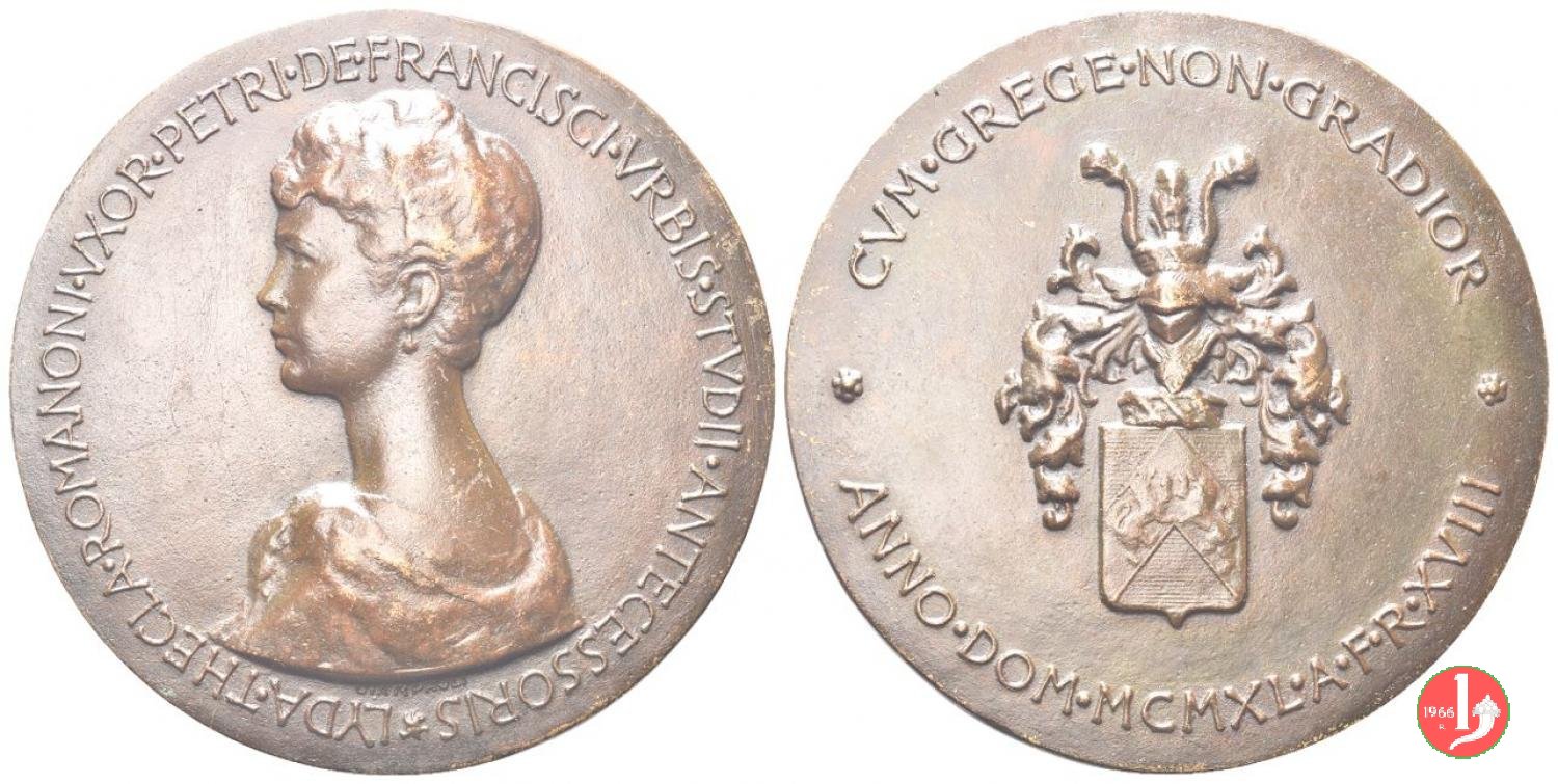 Dritto: LYDA • THECLA • ROMANONI • VXOR • PETRI • DE • FRANCISCI • VRBIS • STVDII • ANTECESSORIS *