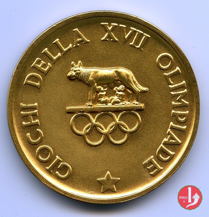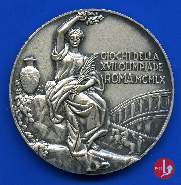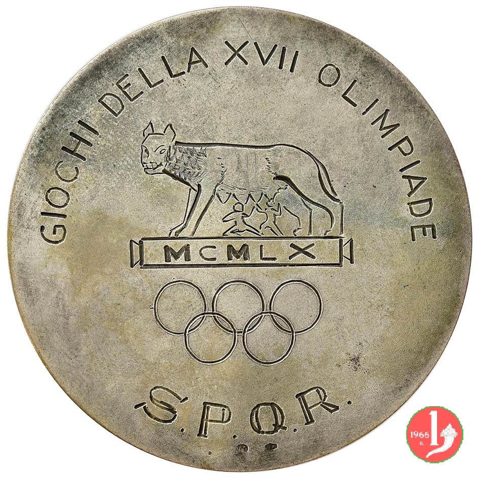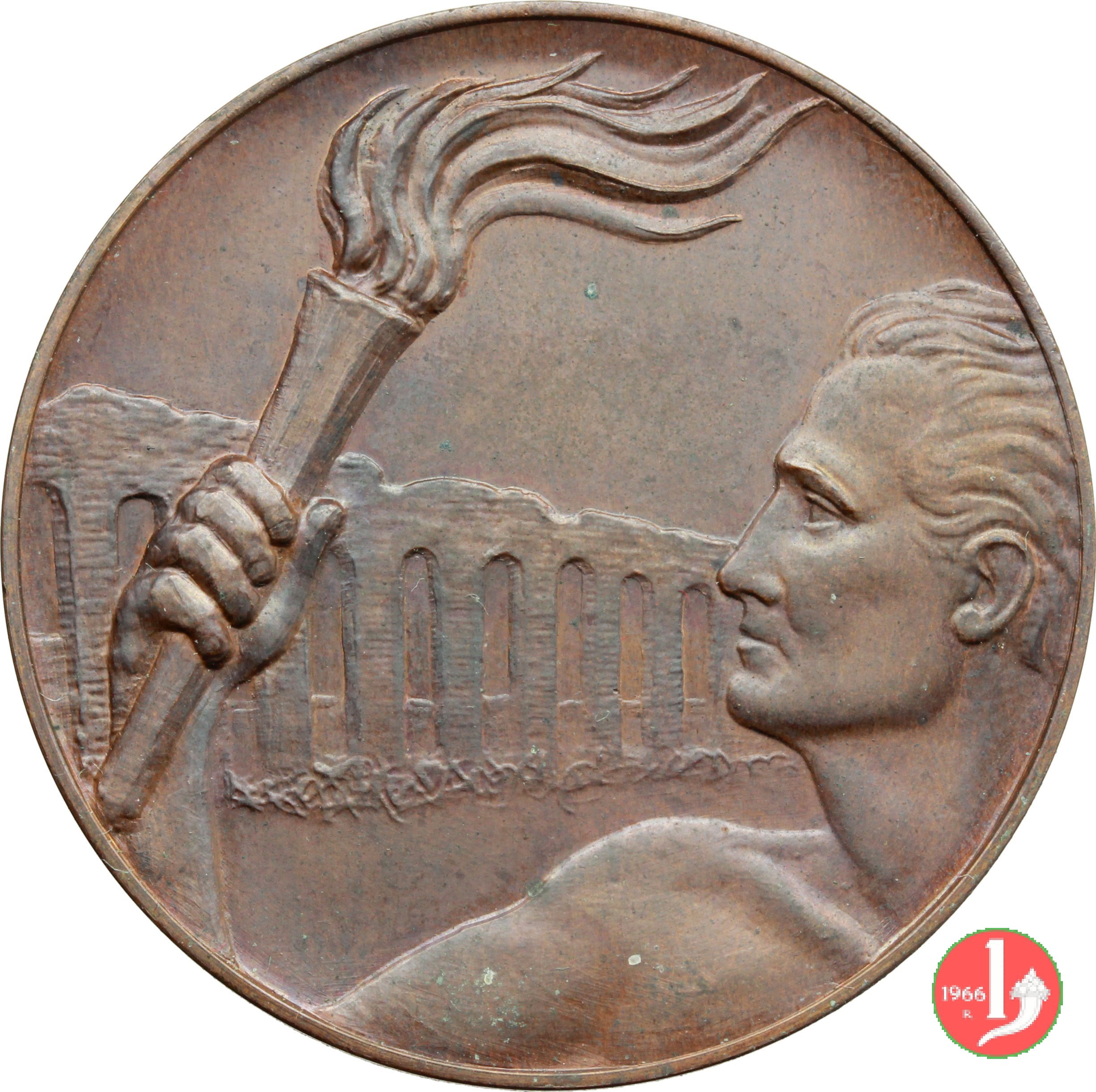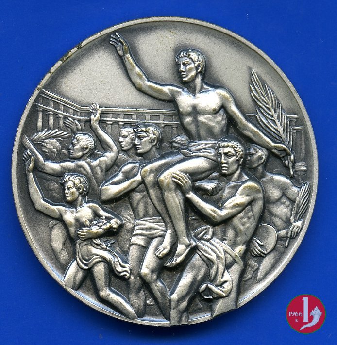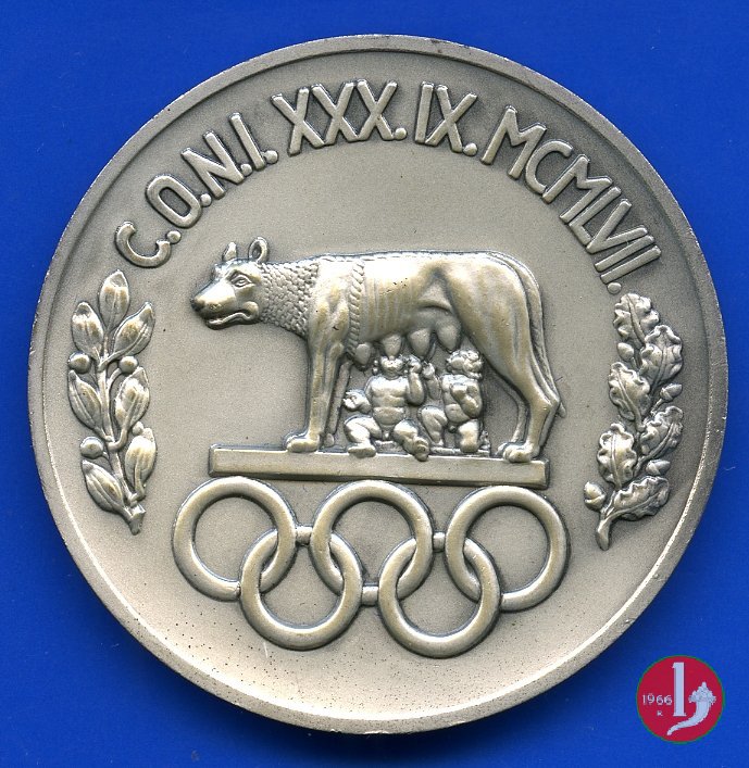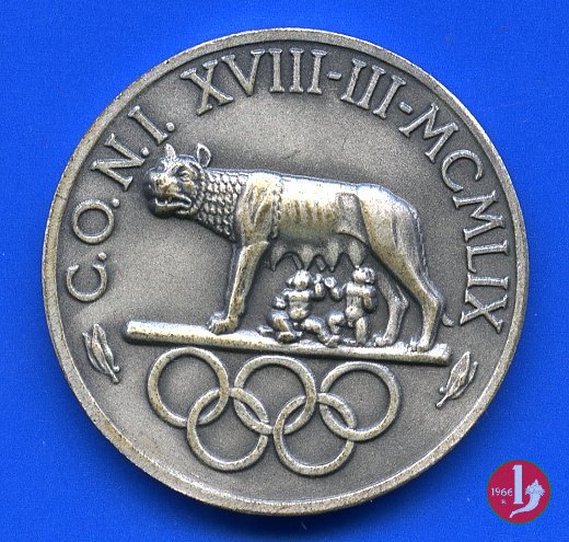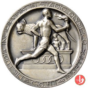 Dritto: DIE LUDIS INCIPIENTI IN STADIO OLYMPICO SOLLEMNI = C.O.N.I (tra foglie d'alloro)
