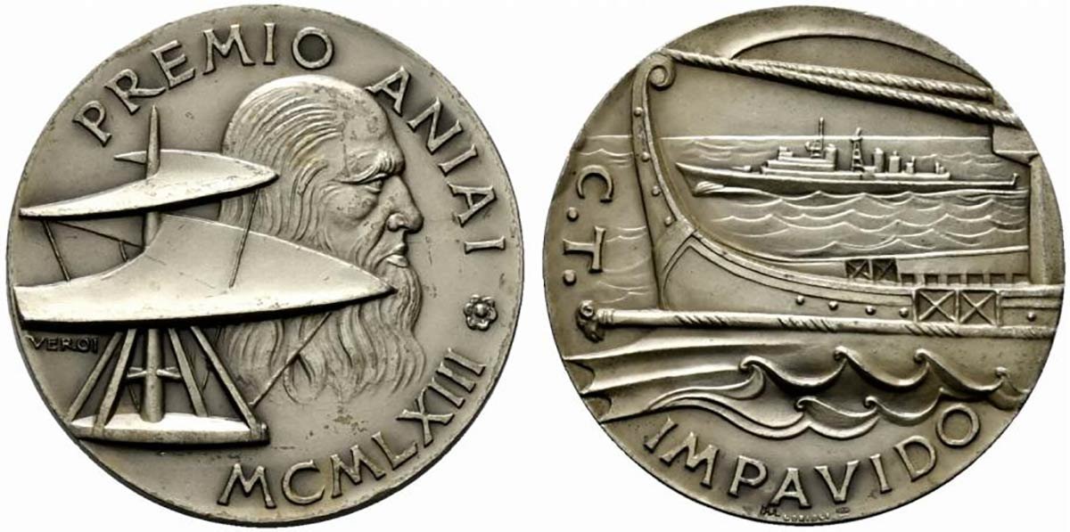 Verso: Tra rami di alloro e quercia: C.H.I.O. = DI ROMA = 1954 = PREMIO = DELLE NAZIONI