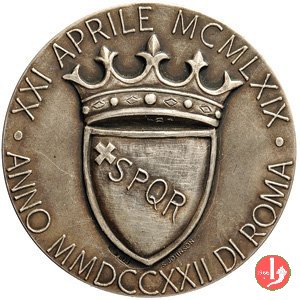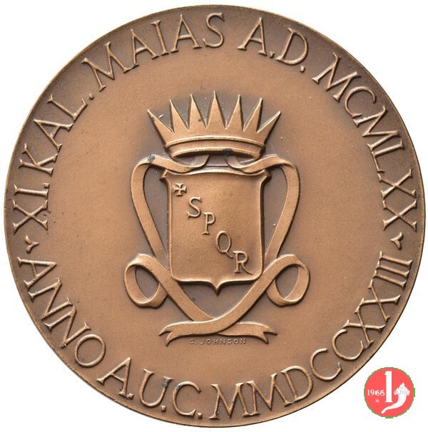 Verso: ROMA ANNO DOMINI LXXX = ROMA ANNO DOMINI MCMLIII (tra foglie d'alloro)