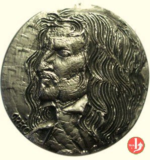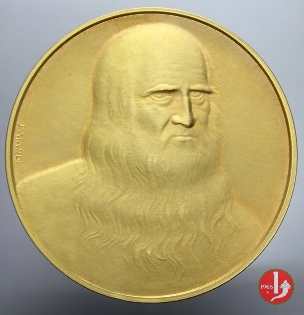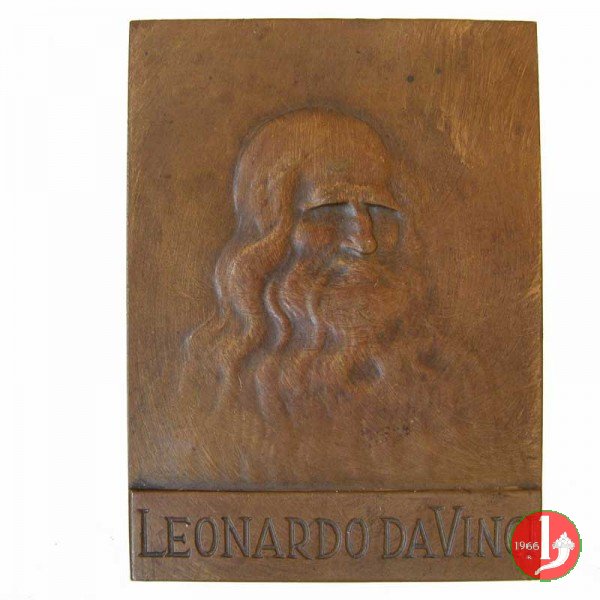 Dritto: busto di Leonardo da Vinci di 3/4 a dx con lunga barba