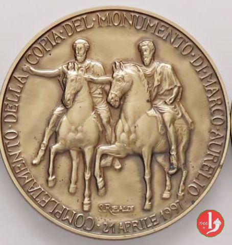 sotto circolarmente ai lati dello stemma della città di Roma: XXI APRILE _ MCMXCI