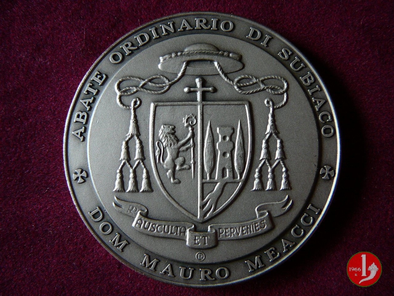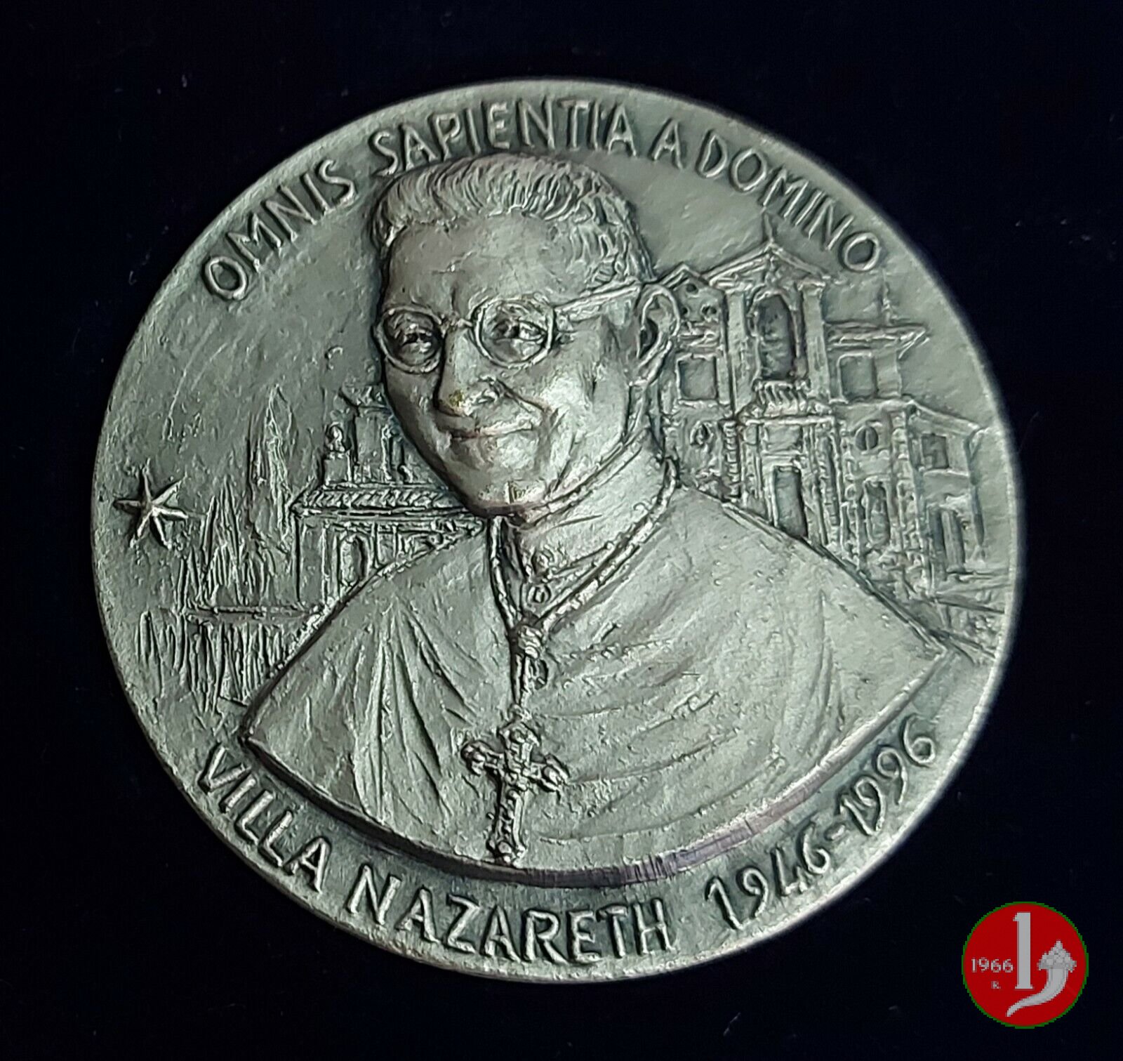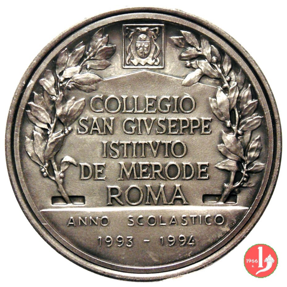 Verso: in cartiglio tra rami d'alloro con stemma in alto: COLLEGIO = SAN GIUSEPPE = ISTITVTO = DE MERODE = ROMA