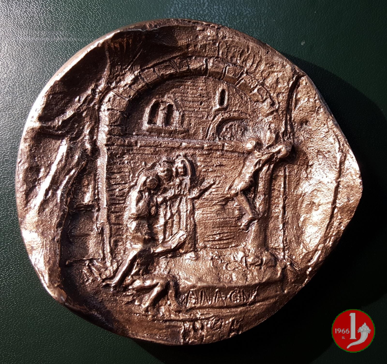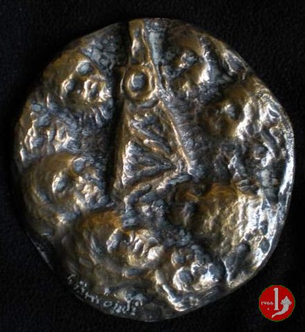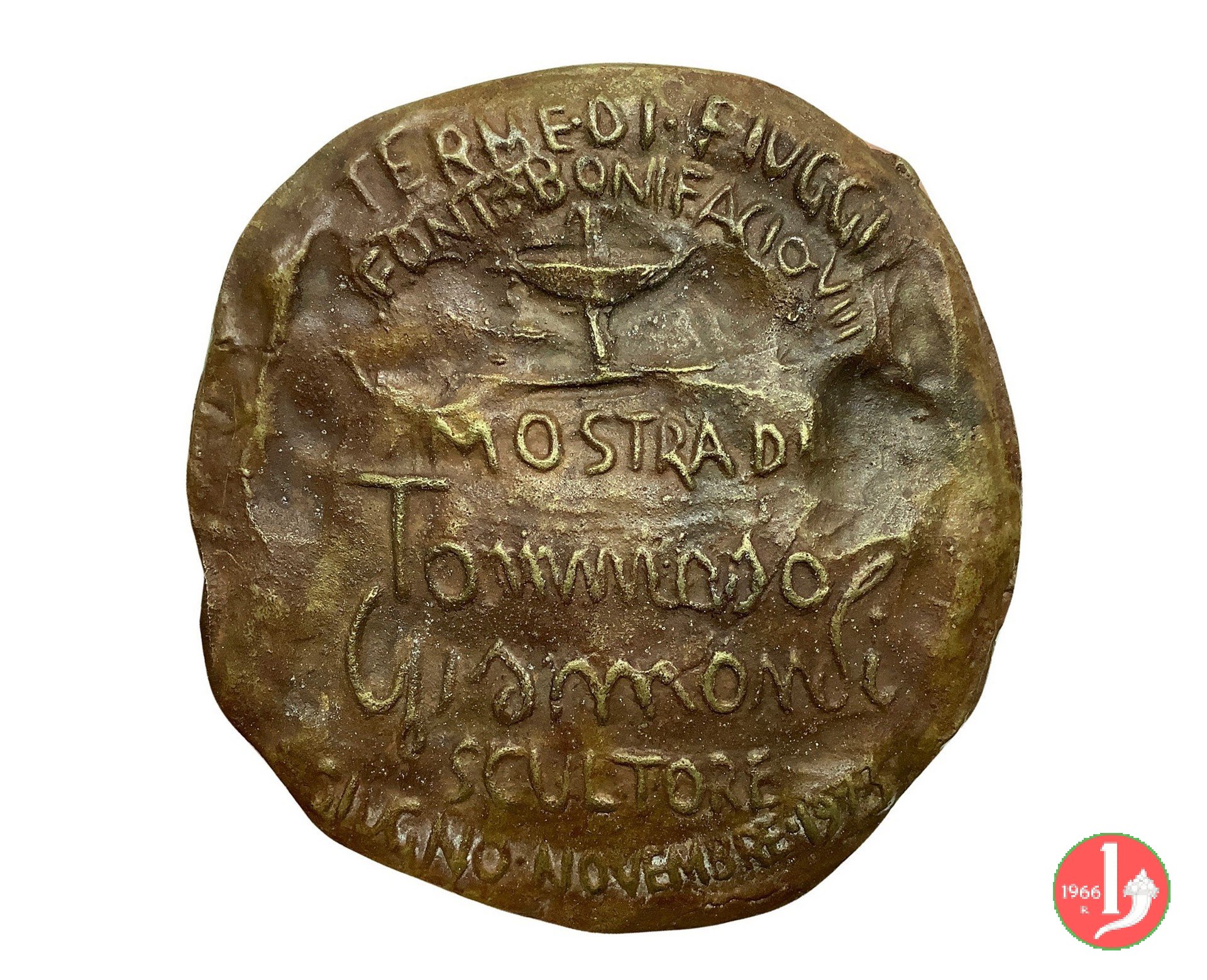 Fiuggi - Mostra di Gismondi 1973 Dritto: quadriga rampante a sx sott: OPUS = GISMONDI = SCULPTORIS sotto ad arco: FONTE • BONIFACIO • VIII fontana zampillante nel campo: MOSTRA DI = TOMMASO = GISMONDI = SCULTORE = GIUGNO • NOVEMBRE • 1973 | |